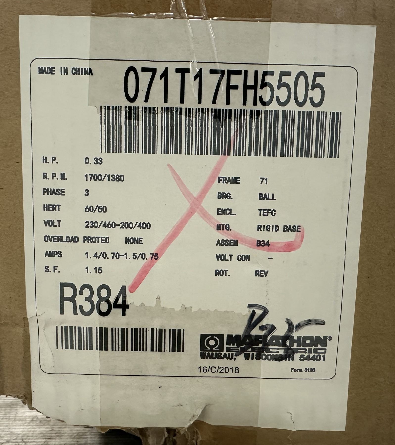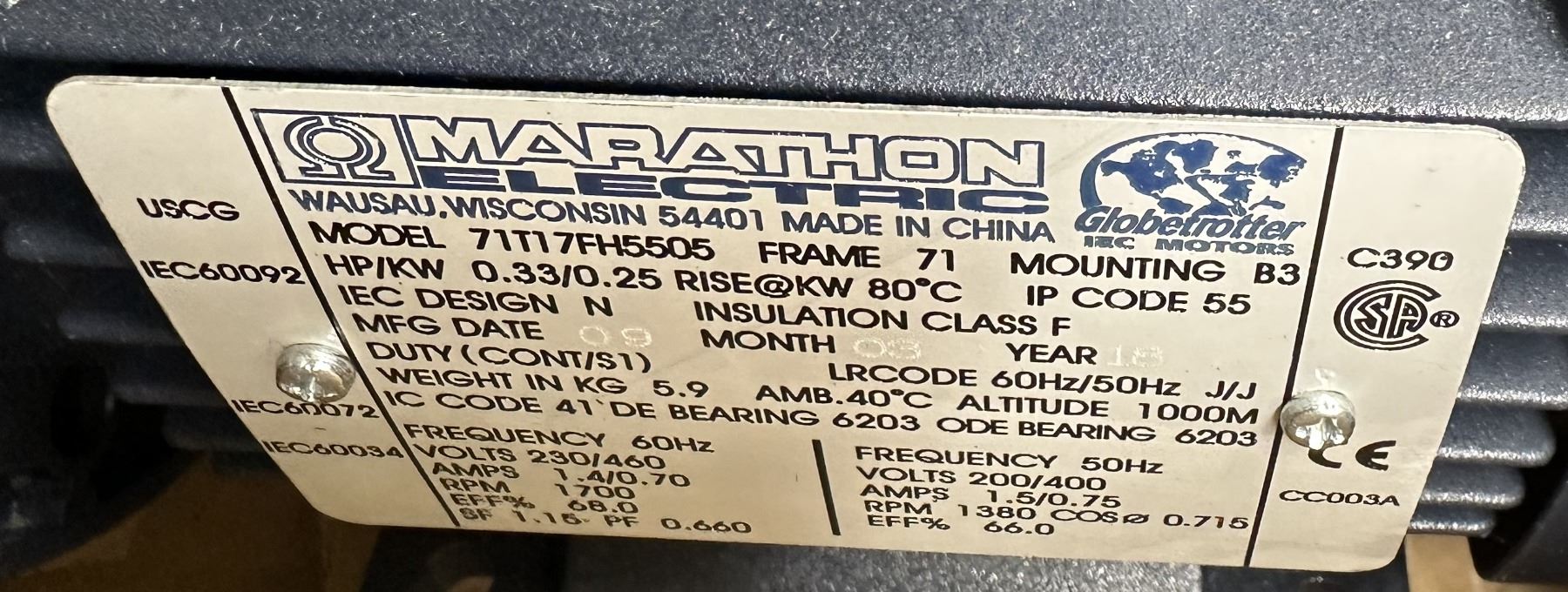 0.33 HP Marathon #71T17FH5505 Motor