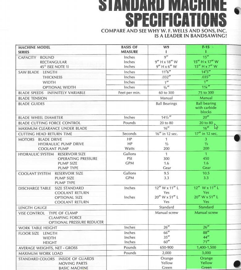 WF Wells & Sons Model F-15 Heavy Duty Automatic Saw