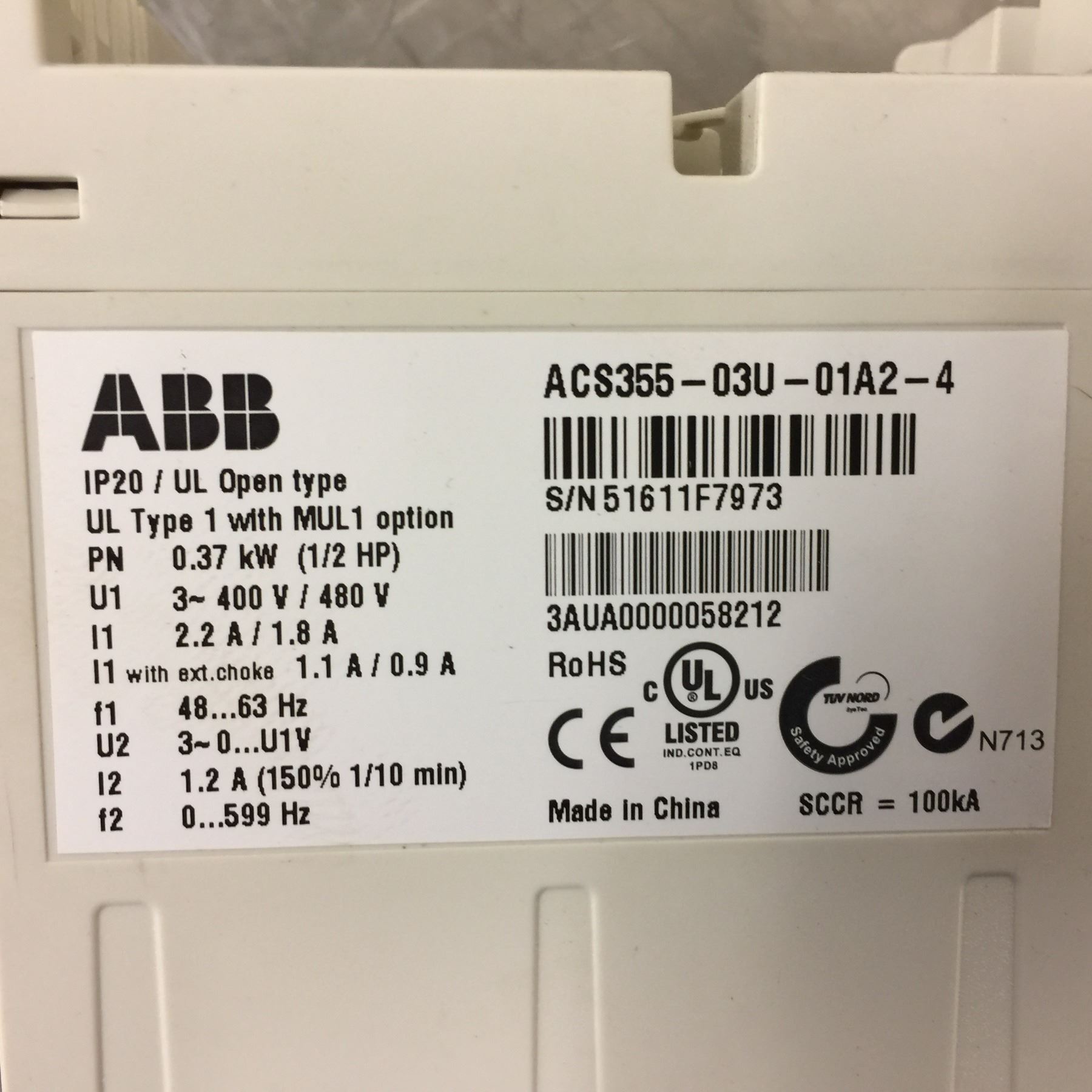 (2) ABB ACS355-03U-01A2-4 FREQUENCY DRIVE