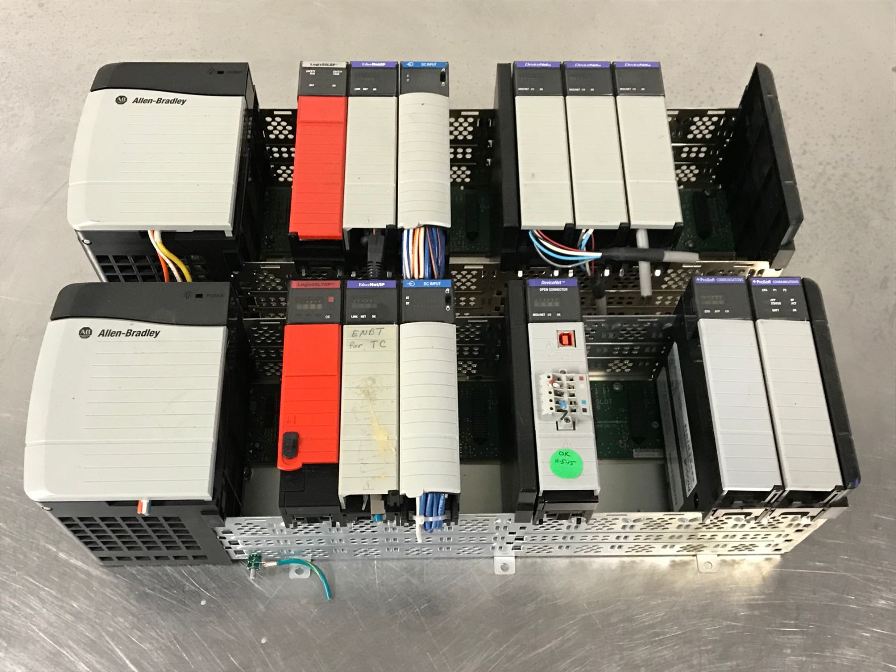 (2) ALLEN BRADLEY 1756-A10 10 SLOT CHASSIS W/ MODULES