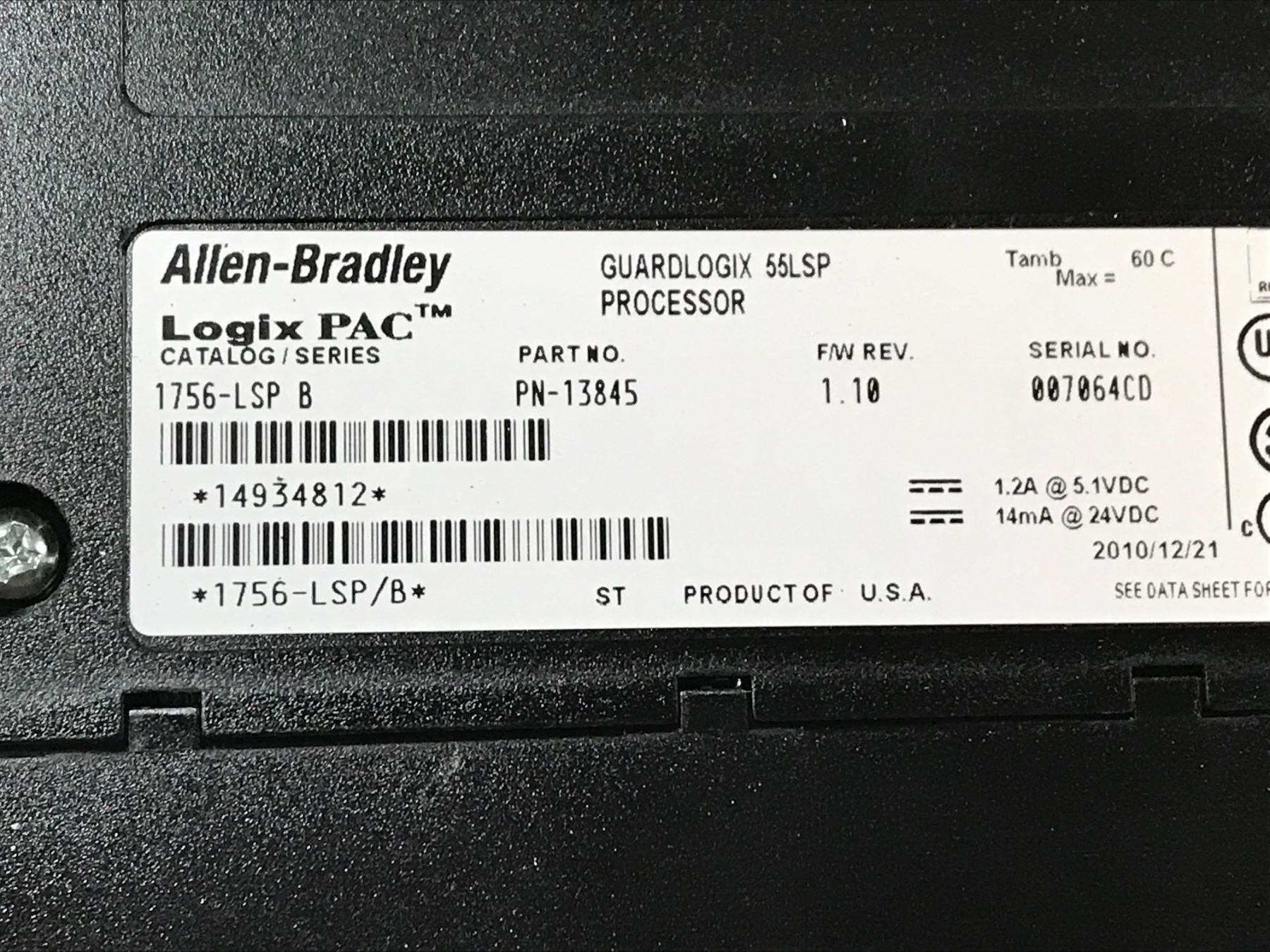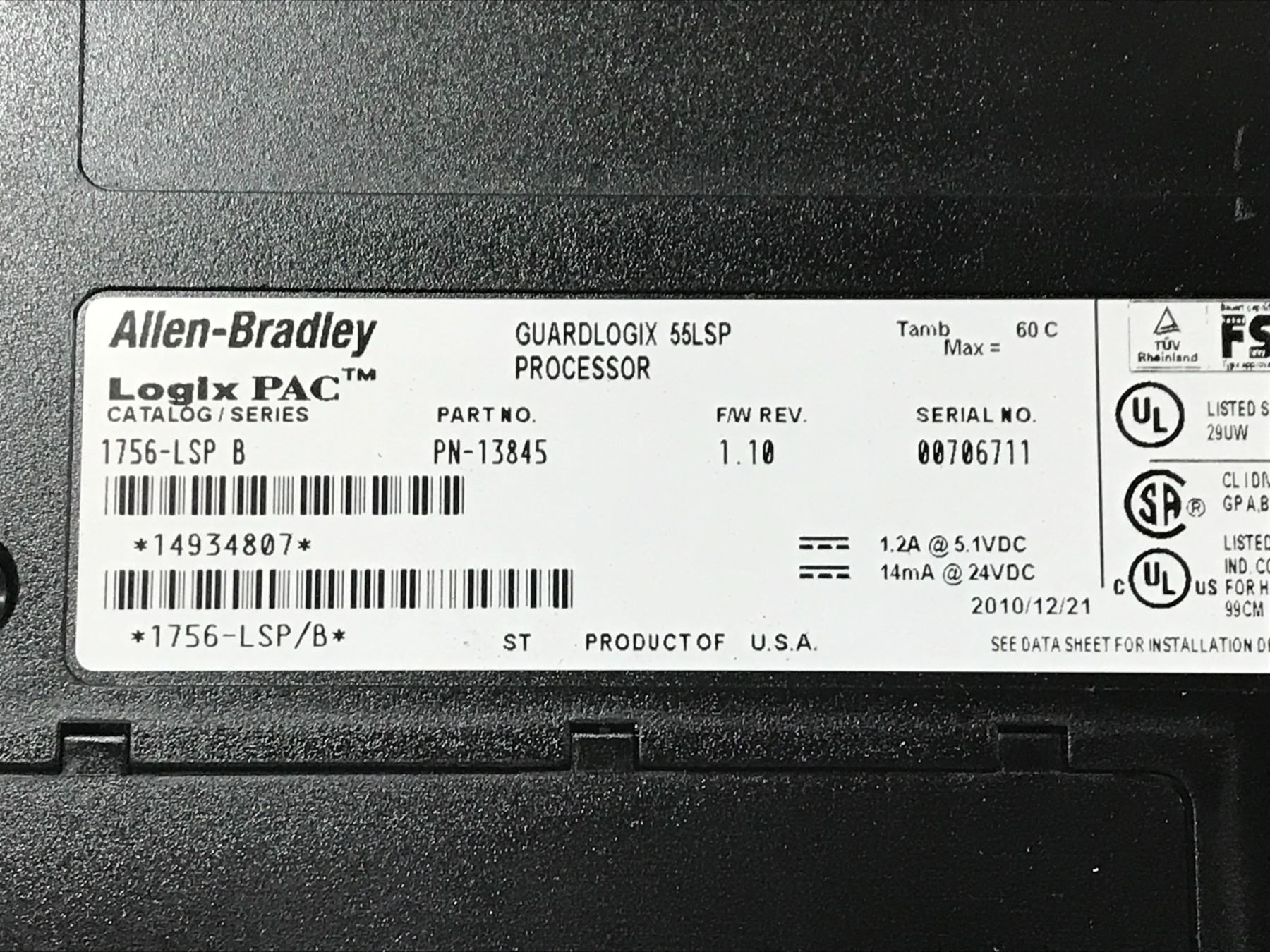 (2) ALLEN BRADLEY 1756-LSP B GUARD LOGIX 55LSP PROCESSOR