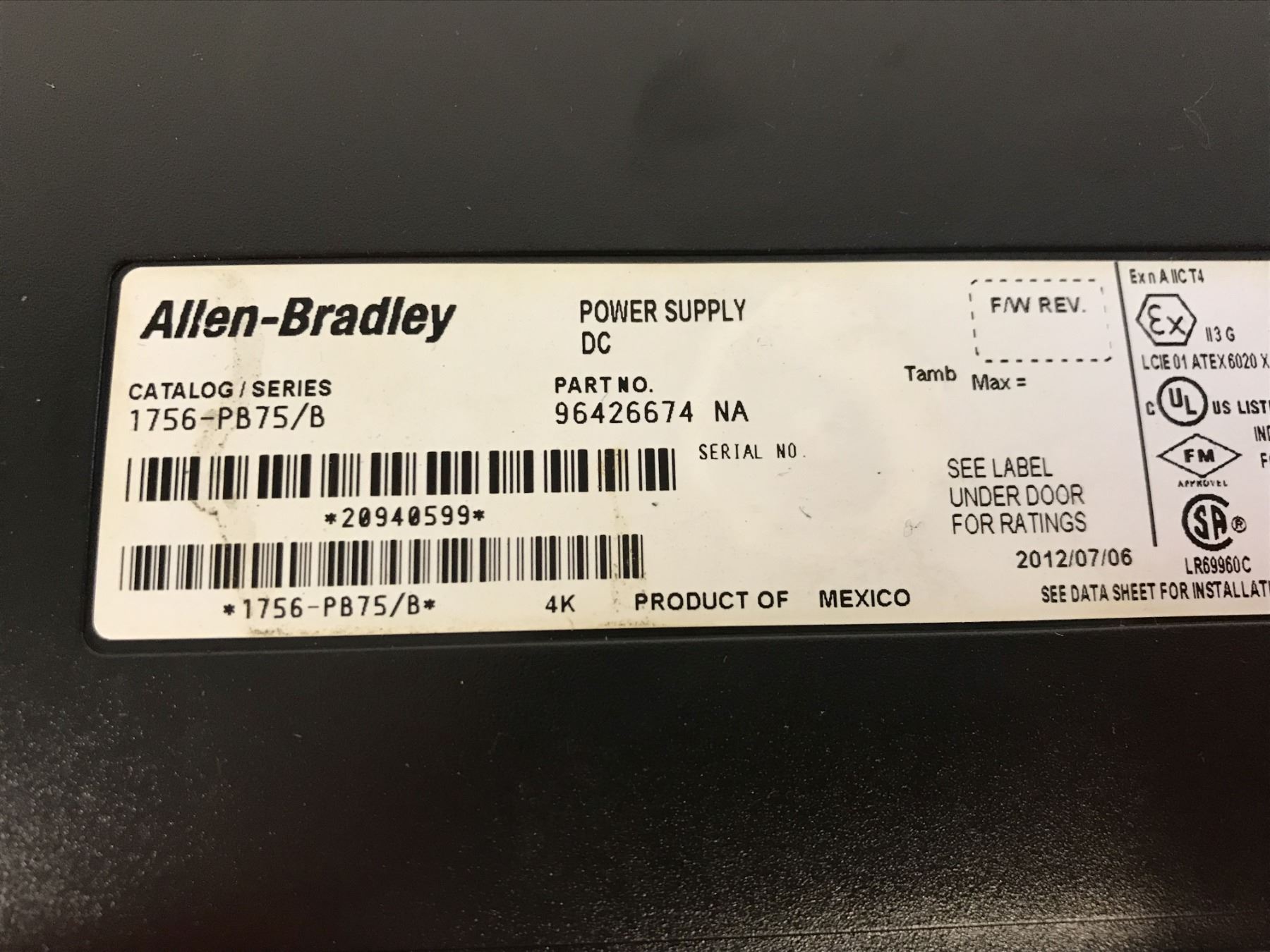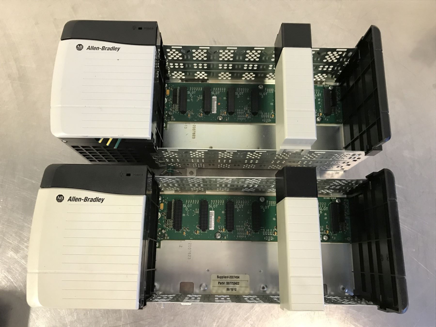 (2) ALLEN BRADLEY 1756-PB75/B POWER SUPPLY W/ 1756-A7 7 SLOT CHASSIS