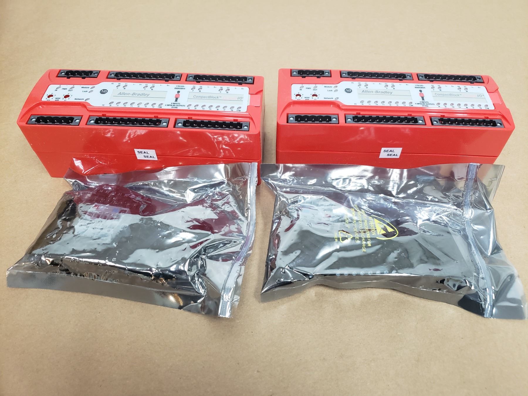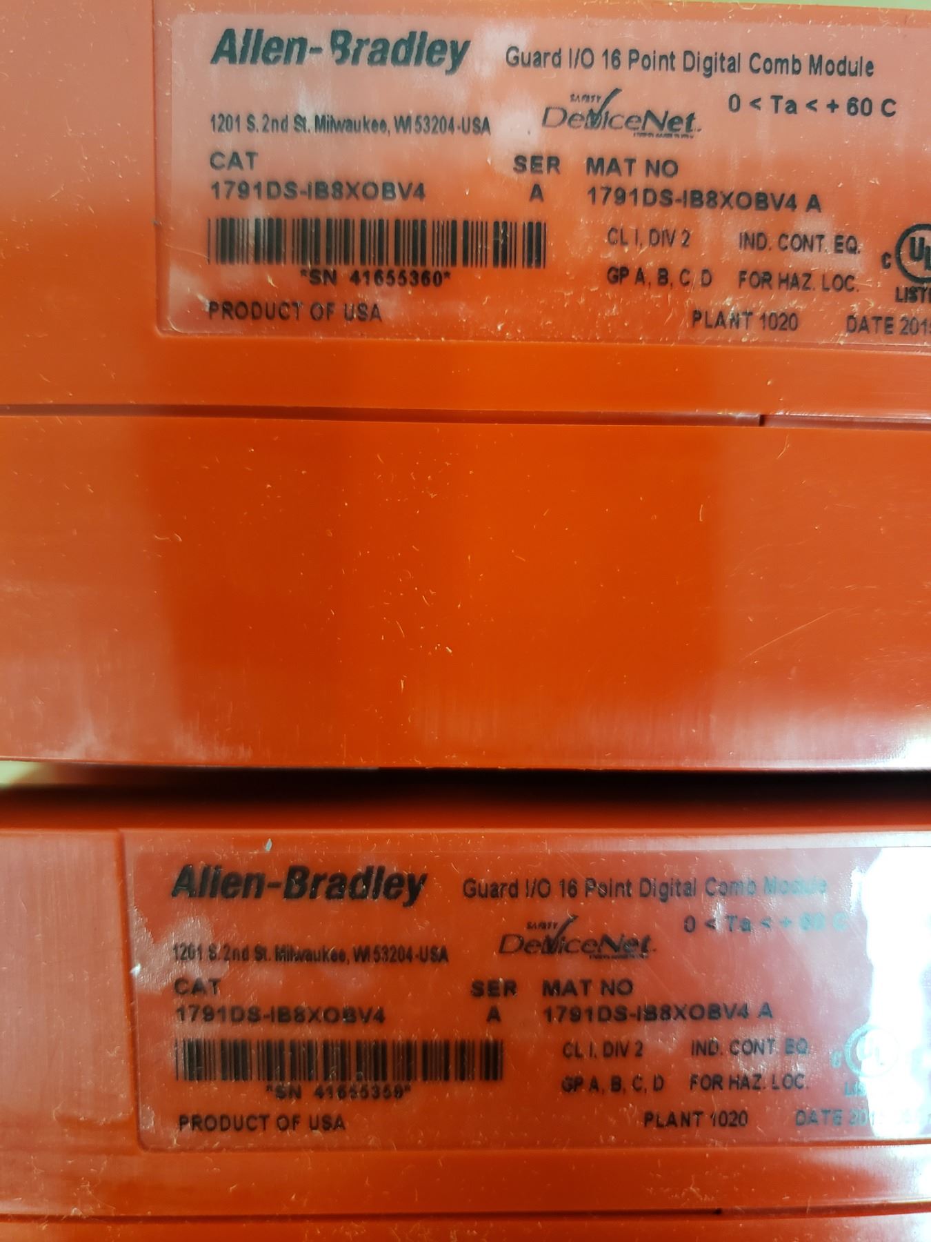 (2) ALLEN-BRADLEY 1791DS-1B8XOBV4 GUARD I/O 16 POINT DIGITAL COMB MODULE