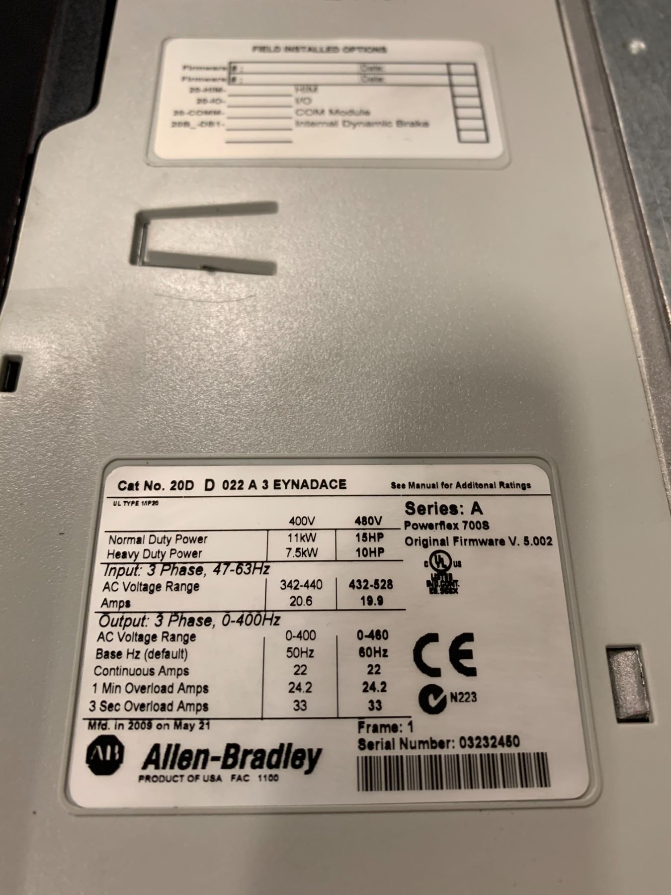 (2) - ALLEN BRADLEY 20D D 022 A 3 EYNADACE POWERFLEX 700S DRIVES