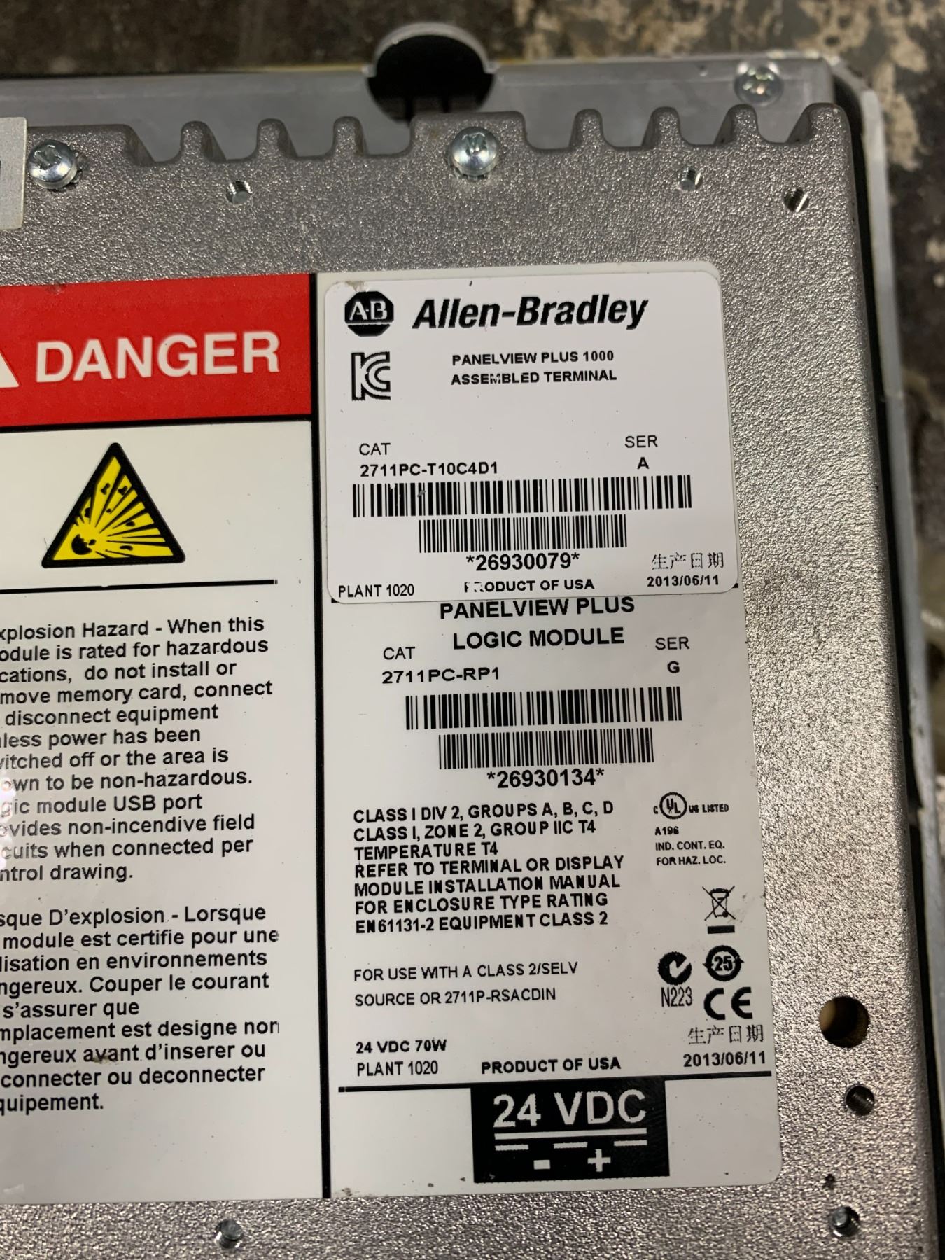 (2) - ALLEN-BRADLEY 2711P-RDT10C PANELVIEW PLUS 1000 COLOR TOUCH MODULES_LOGIG MODULE 2711PC-RP1