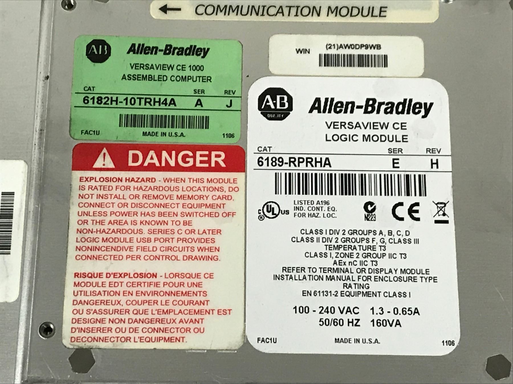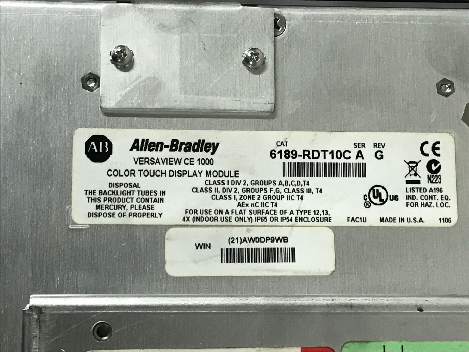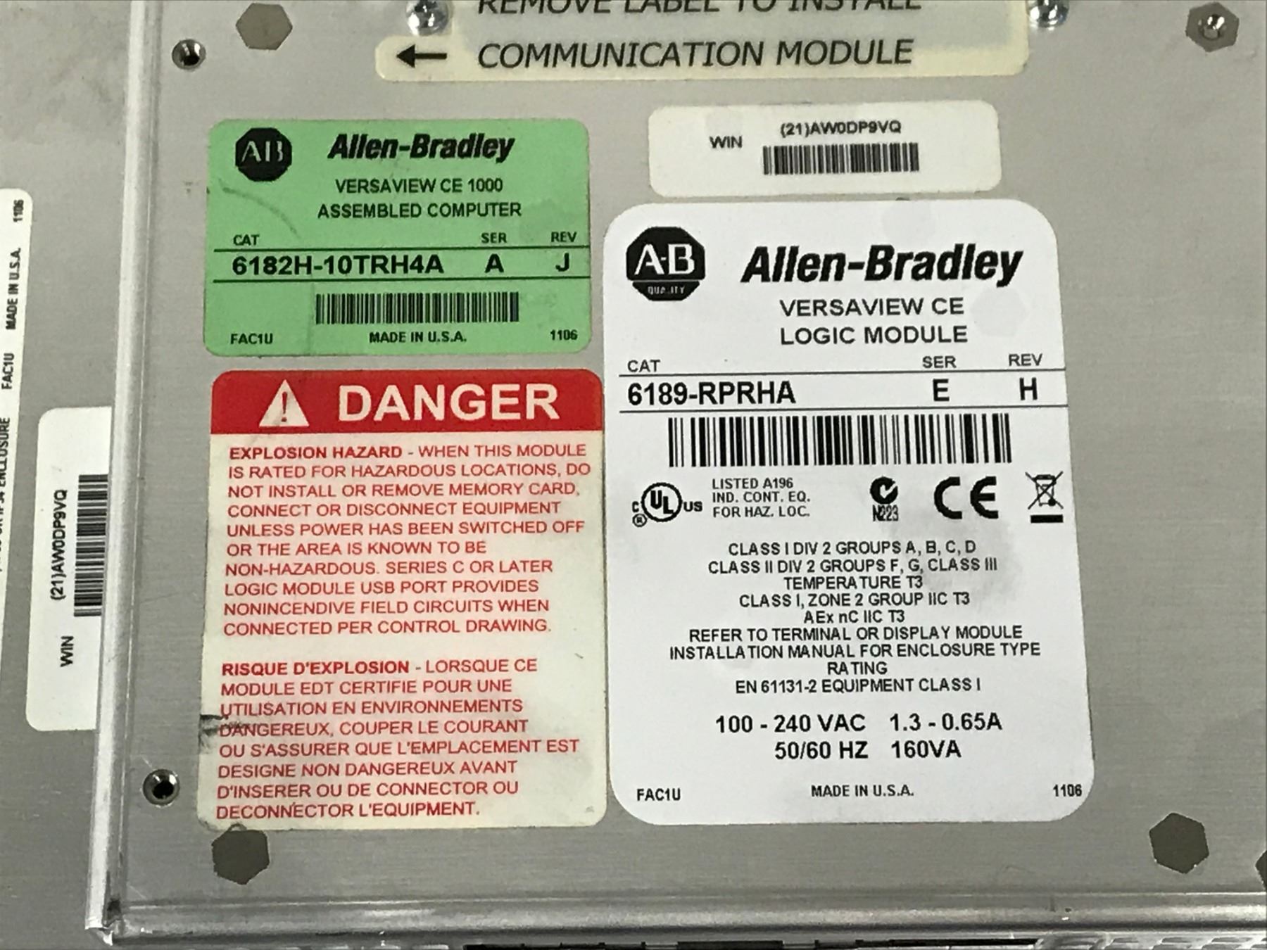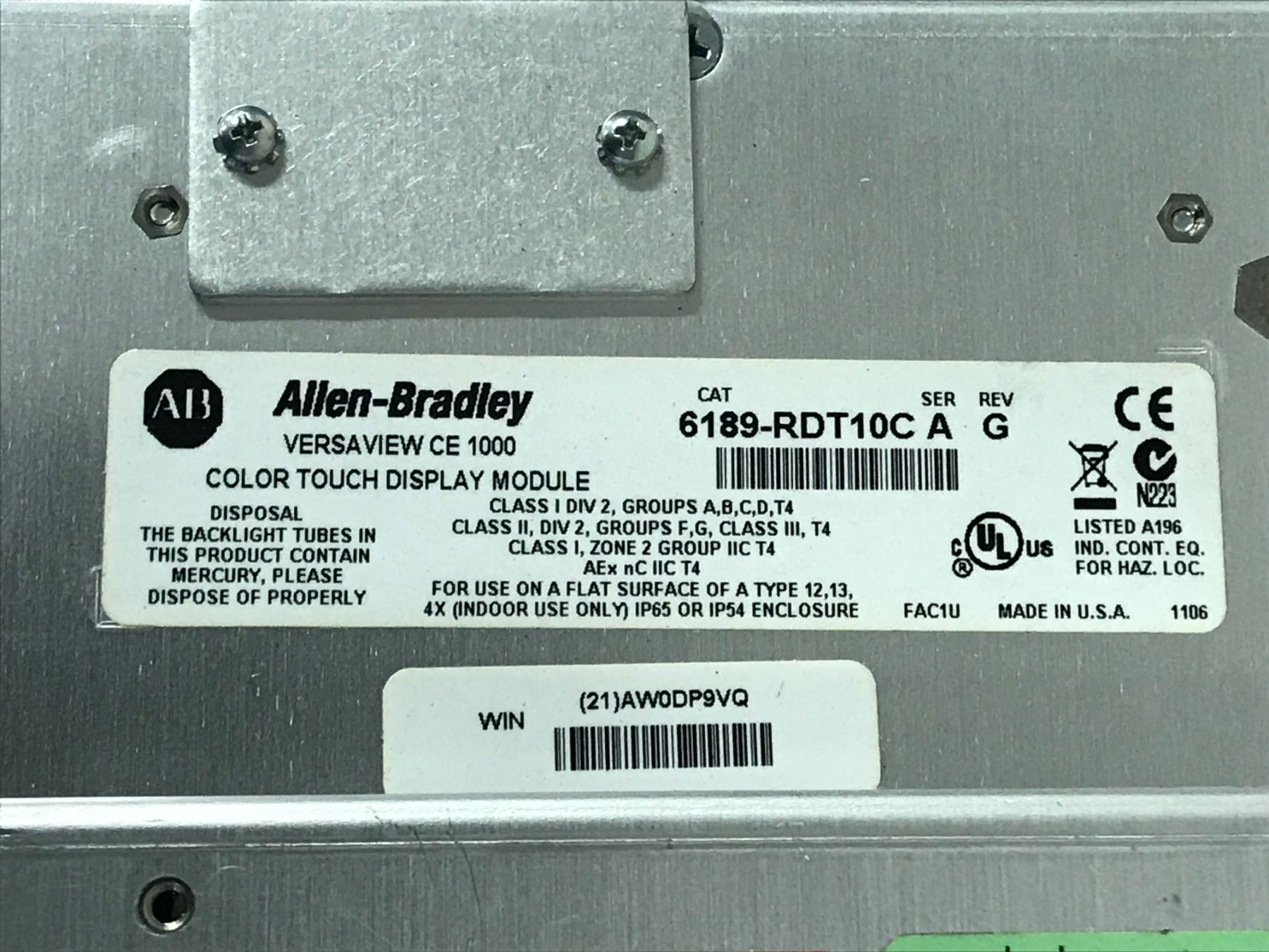 (2) ALLEN BRADLEY 6189-RPRHA VERSAVIEW CE 1000