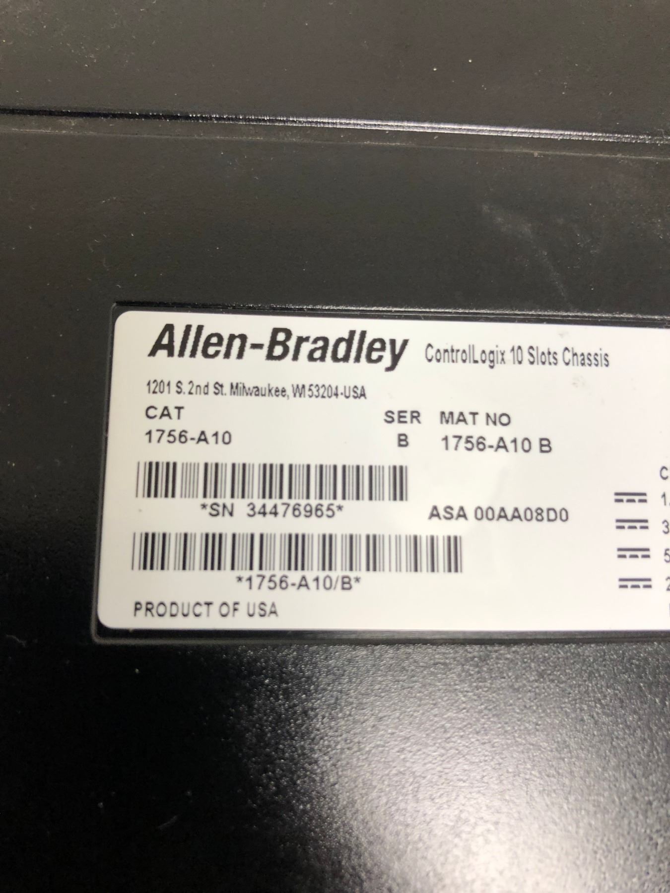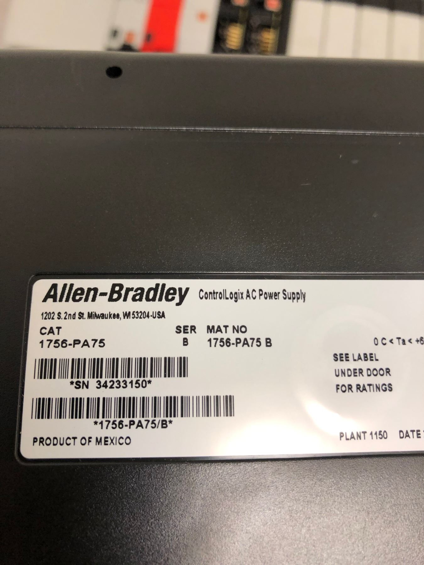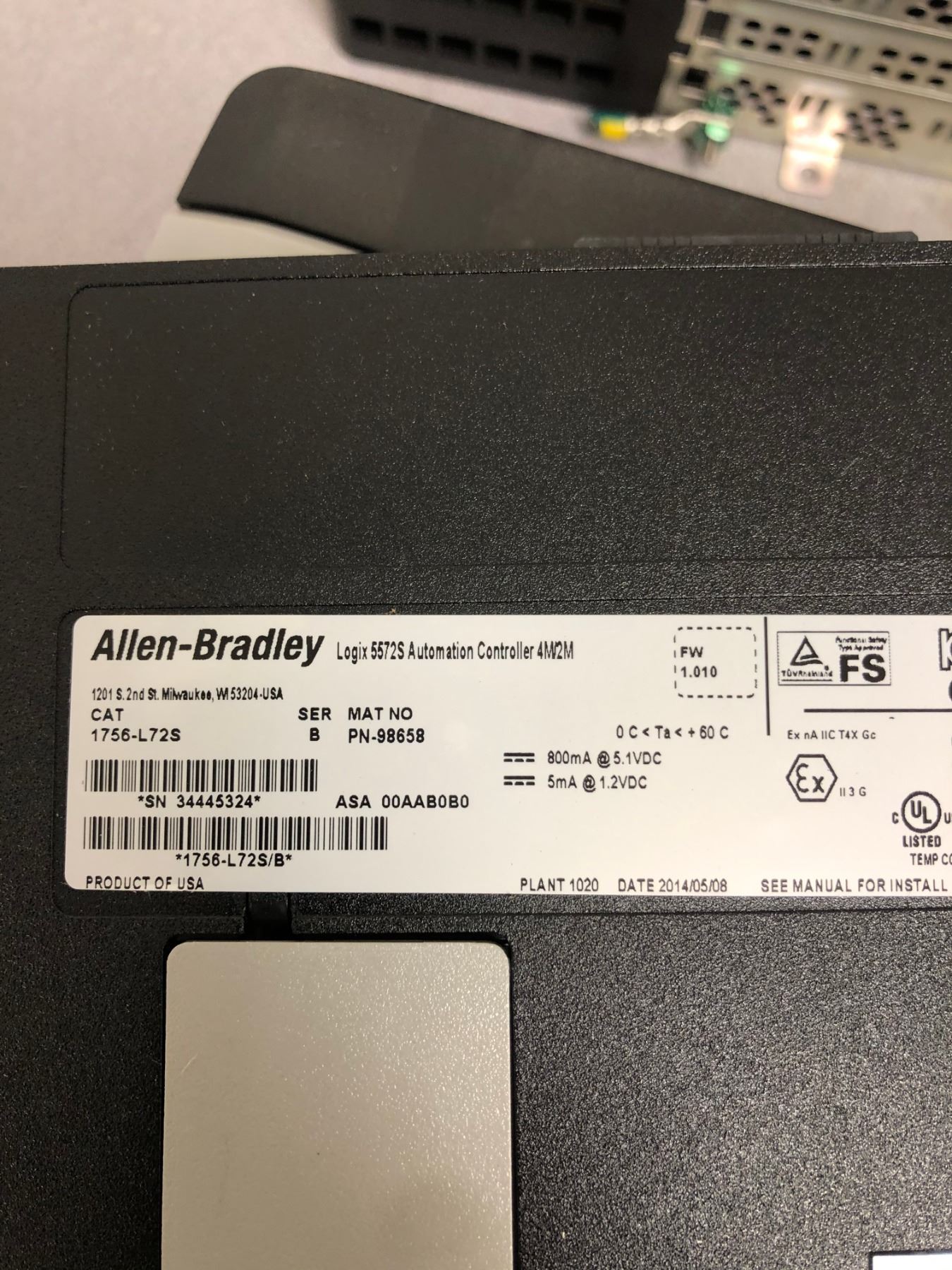 (2) ALLEN-BRADLEY A1756-A10 B CONTROL LOGIX CHASSIS INCLUDING 1756-L72S_CONTROLLER & 1756-PA75 B