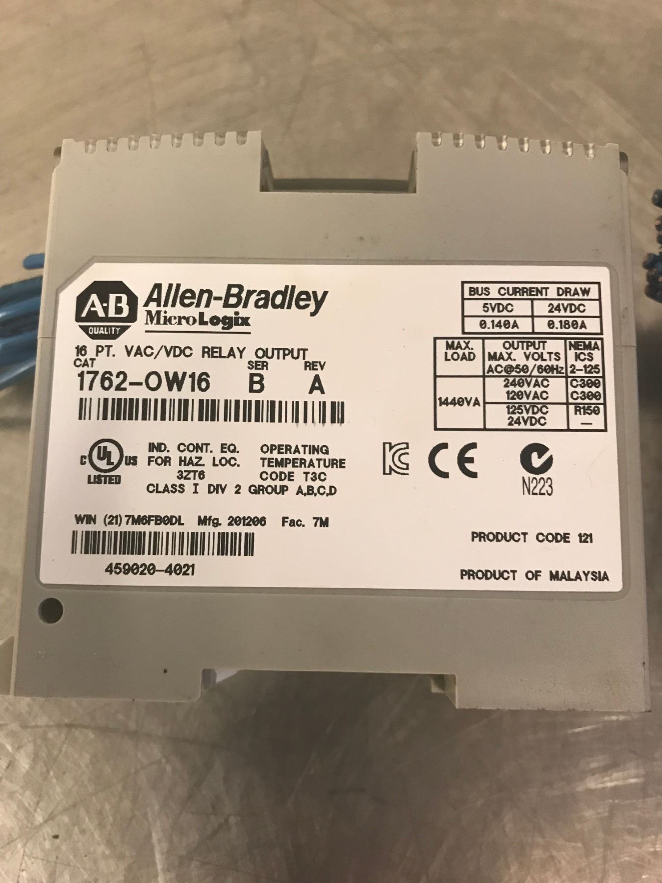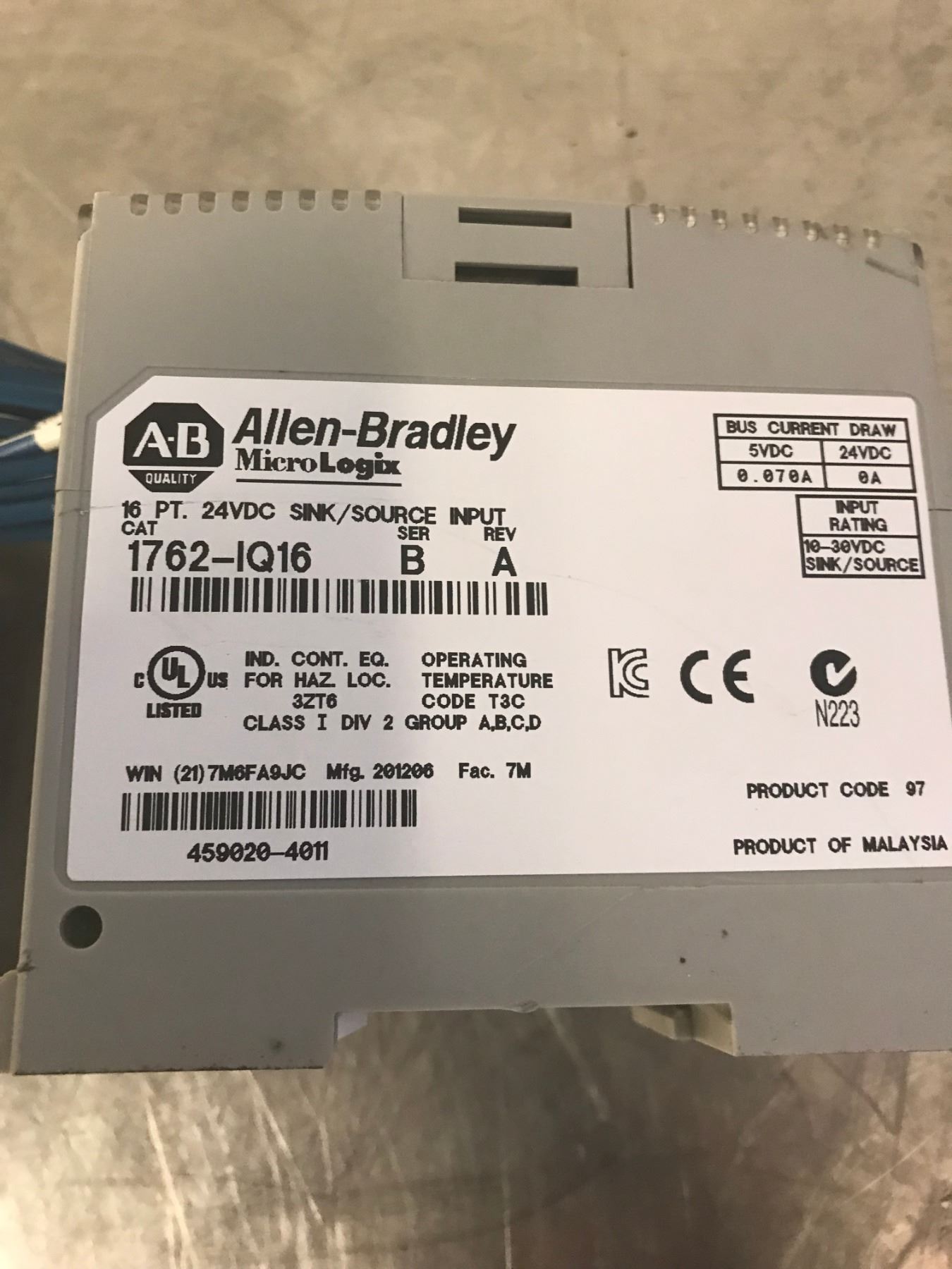 (2) ALLEN BRADLEY INPUT MODULES CAT1762-OW16 / CAT1762IQ16 SER B