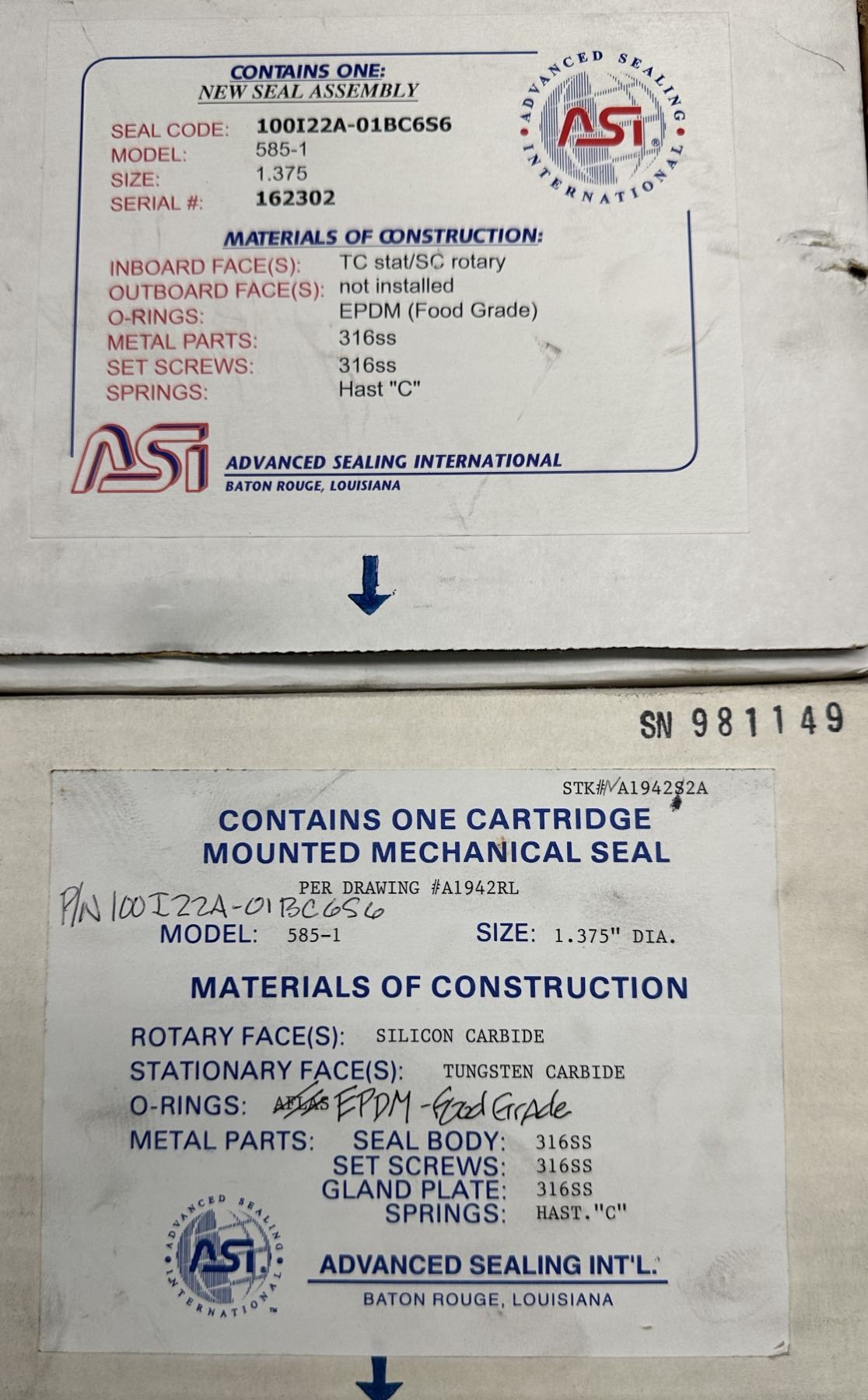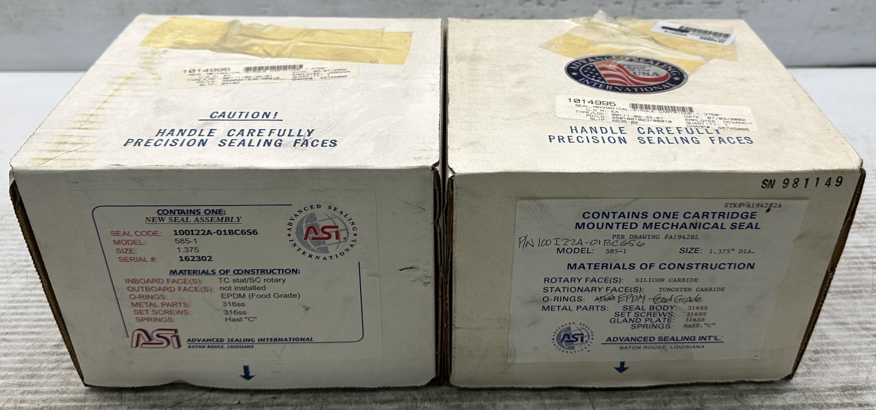 (2) ASI #100I22A-01BC6S6 Model 585-1 Seal Assembly's