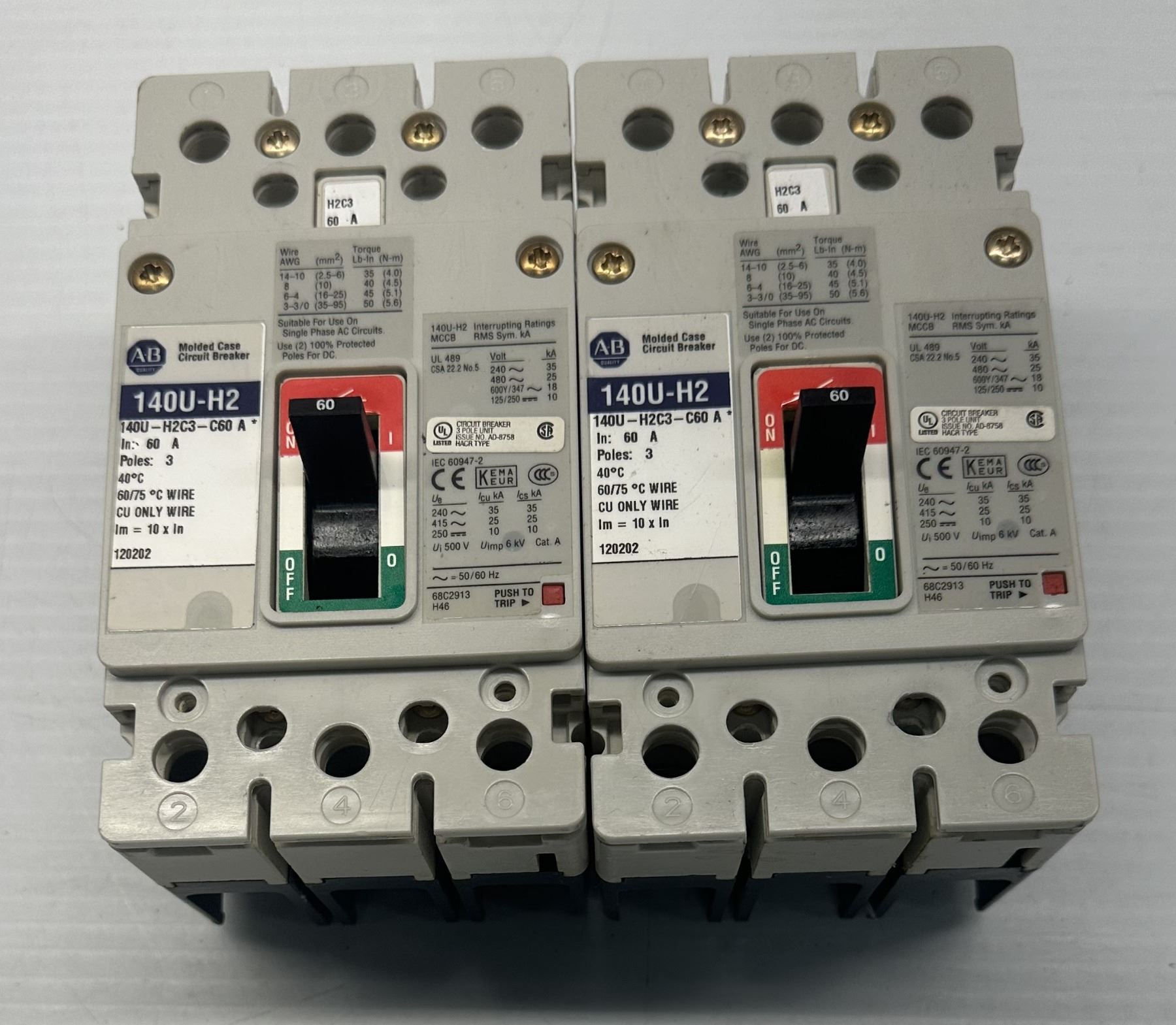 (2) Allen Bradley #140U-H2C3-C60 Circuit Breakers