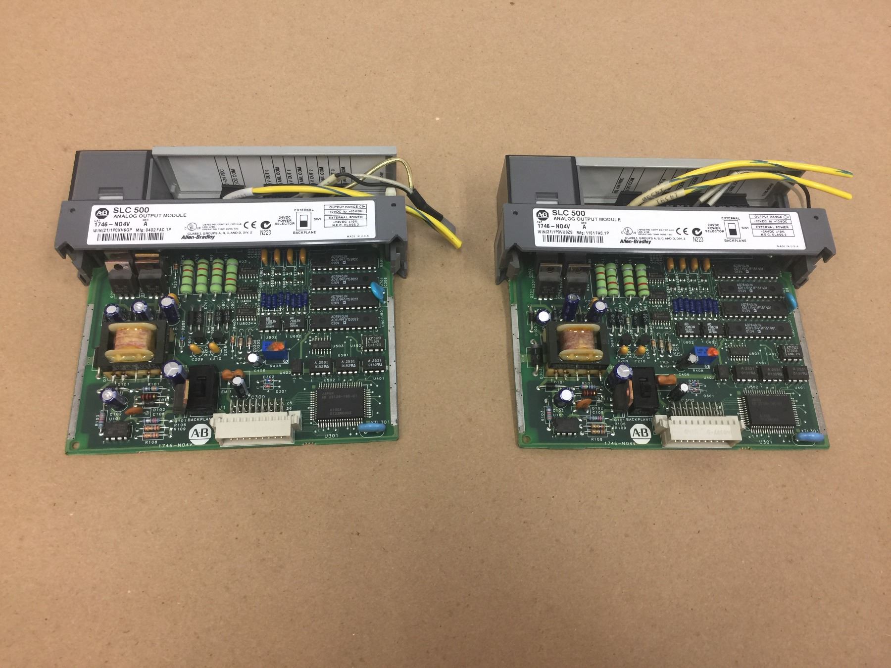 (2) Allen Bradley 1746-N04V Analog Output Module