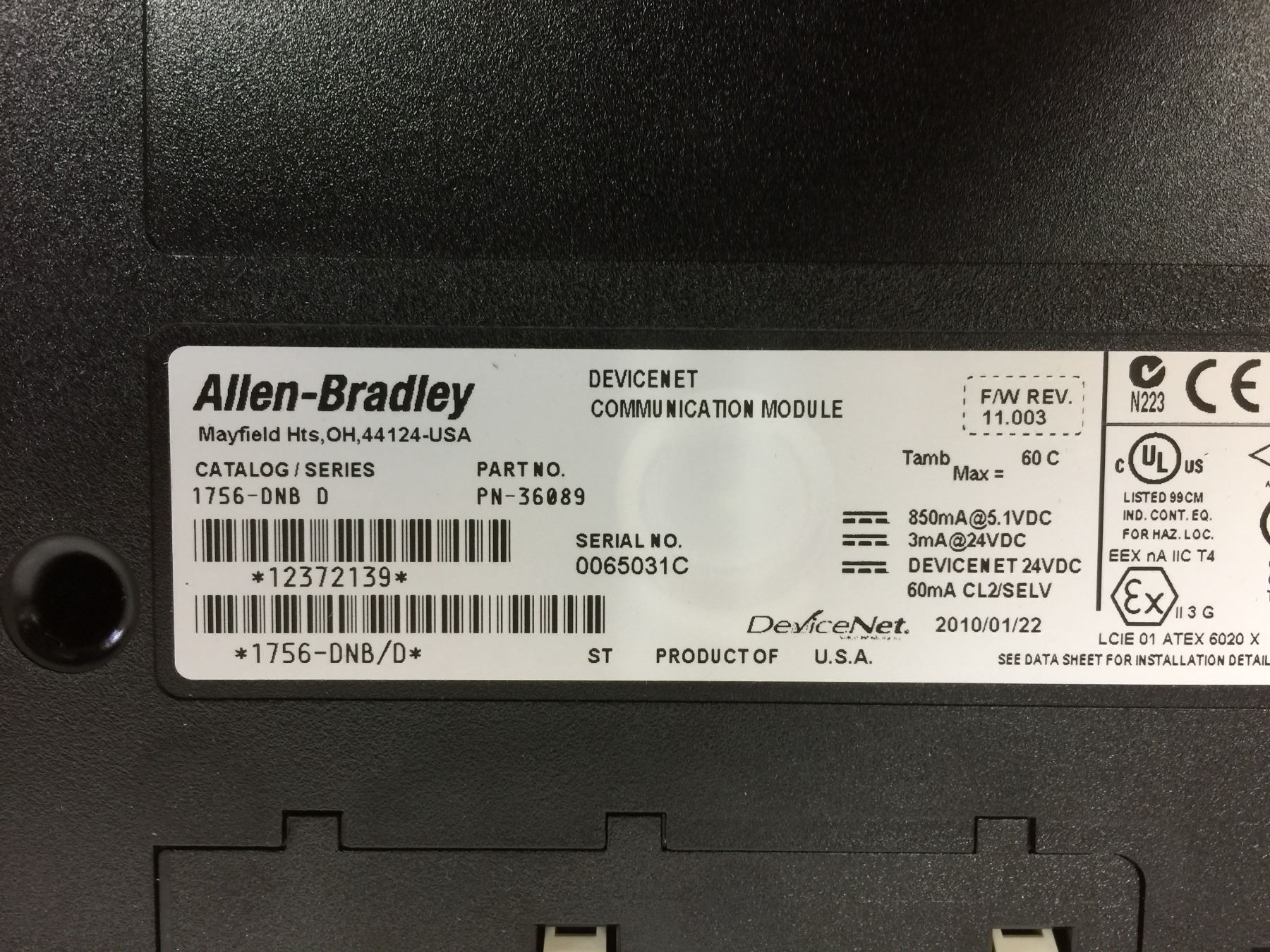 (2) Allen Bradley 1756-DNB Communication Module
