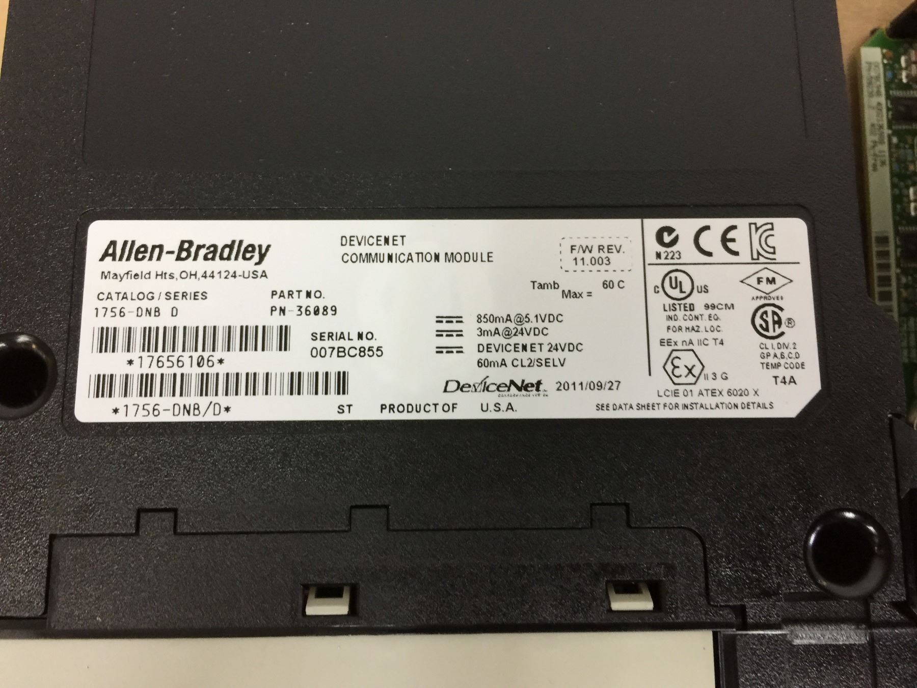 (2) Allen Bradley 1756-DNB Communication Module
