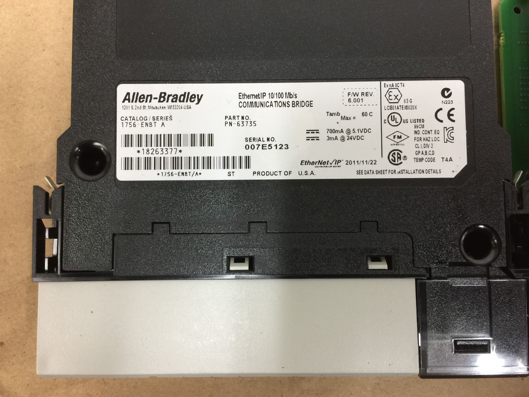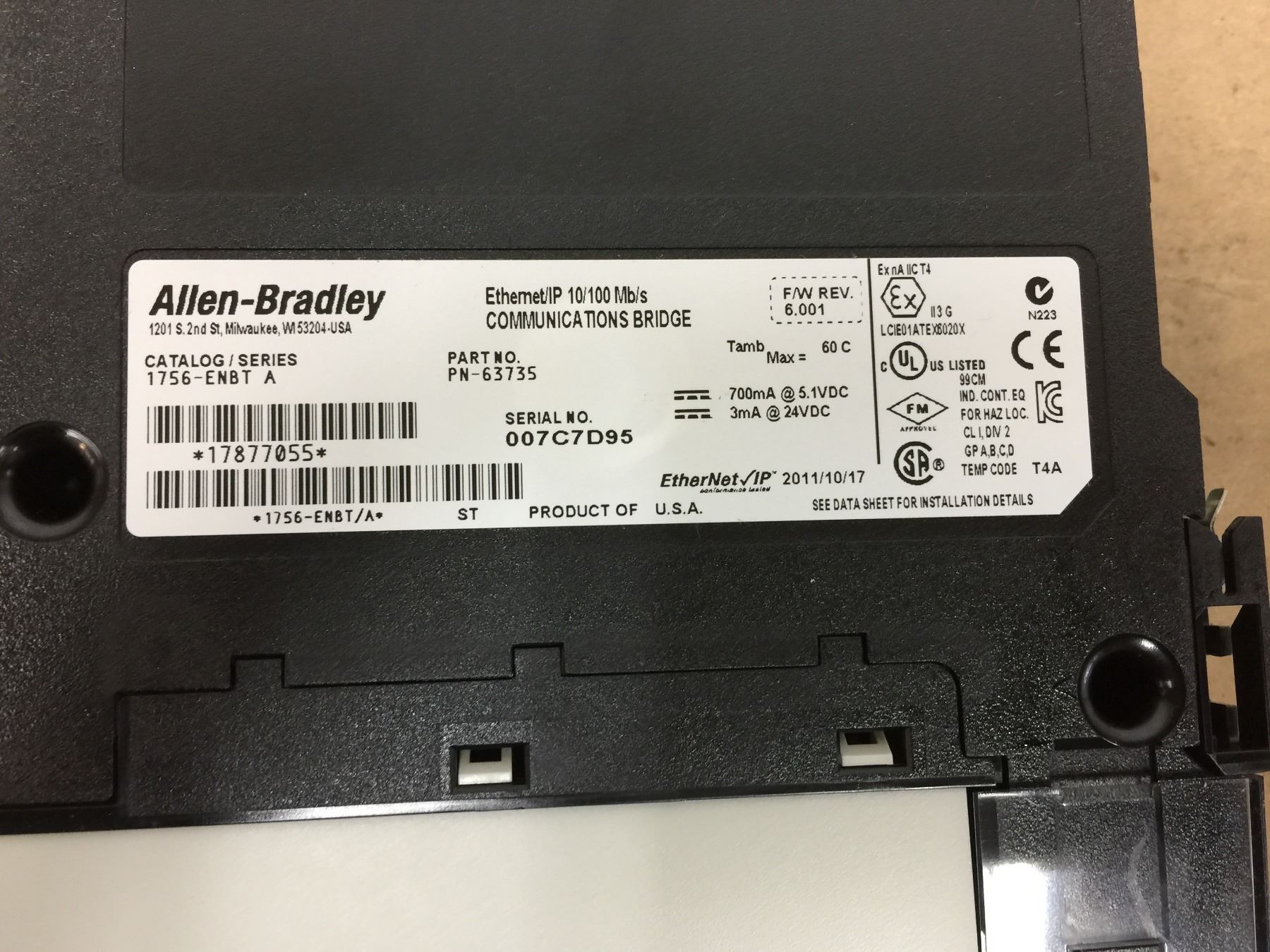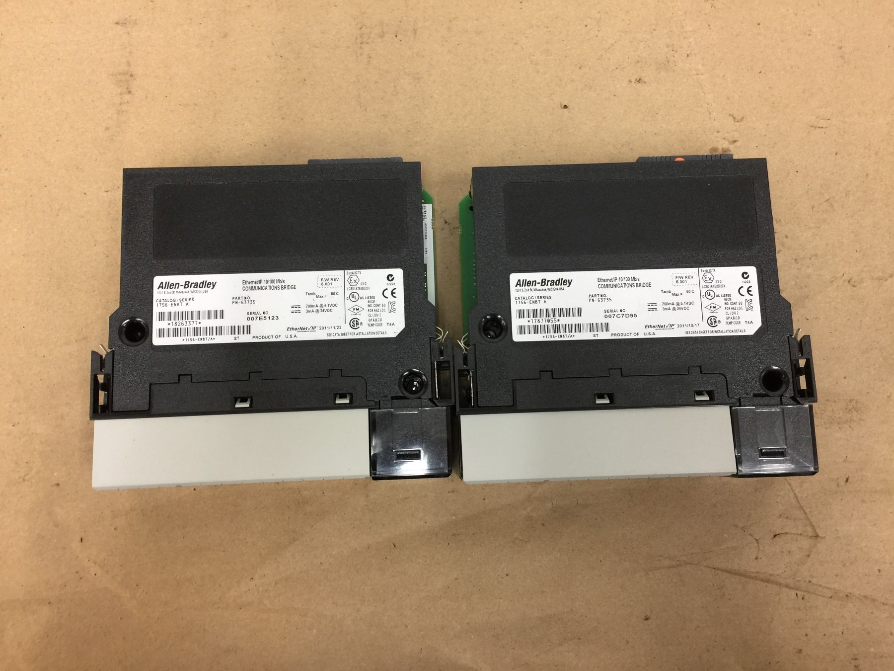 (2) Allen Bradley 1756-ENBT A Ethernet/IP 10/100Mb/s Communications Bridge