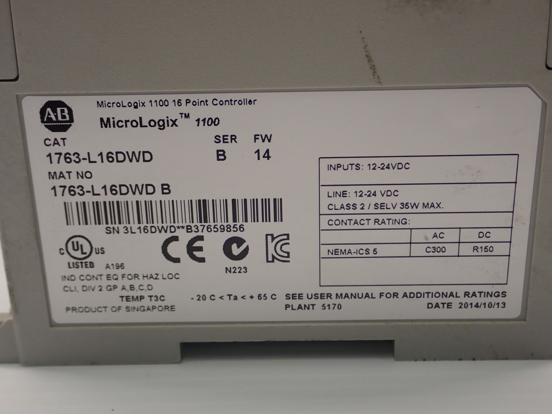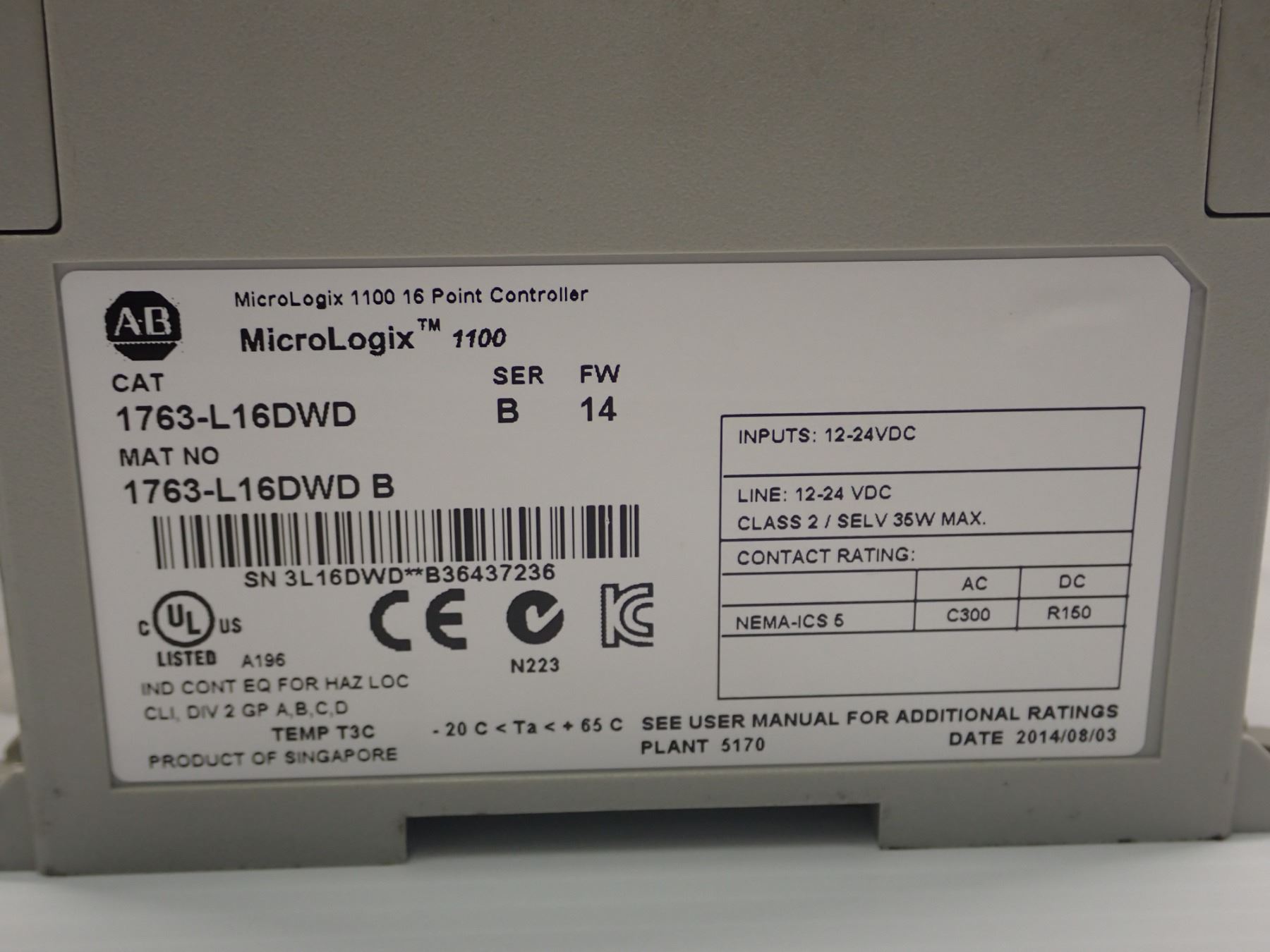 (2) Allen Bradley # 1763-L16DWD Point Controller
