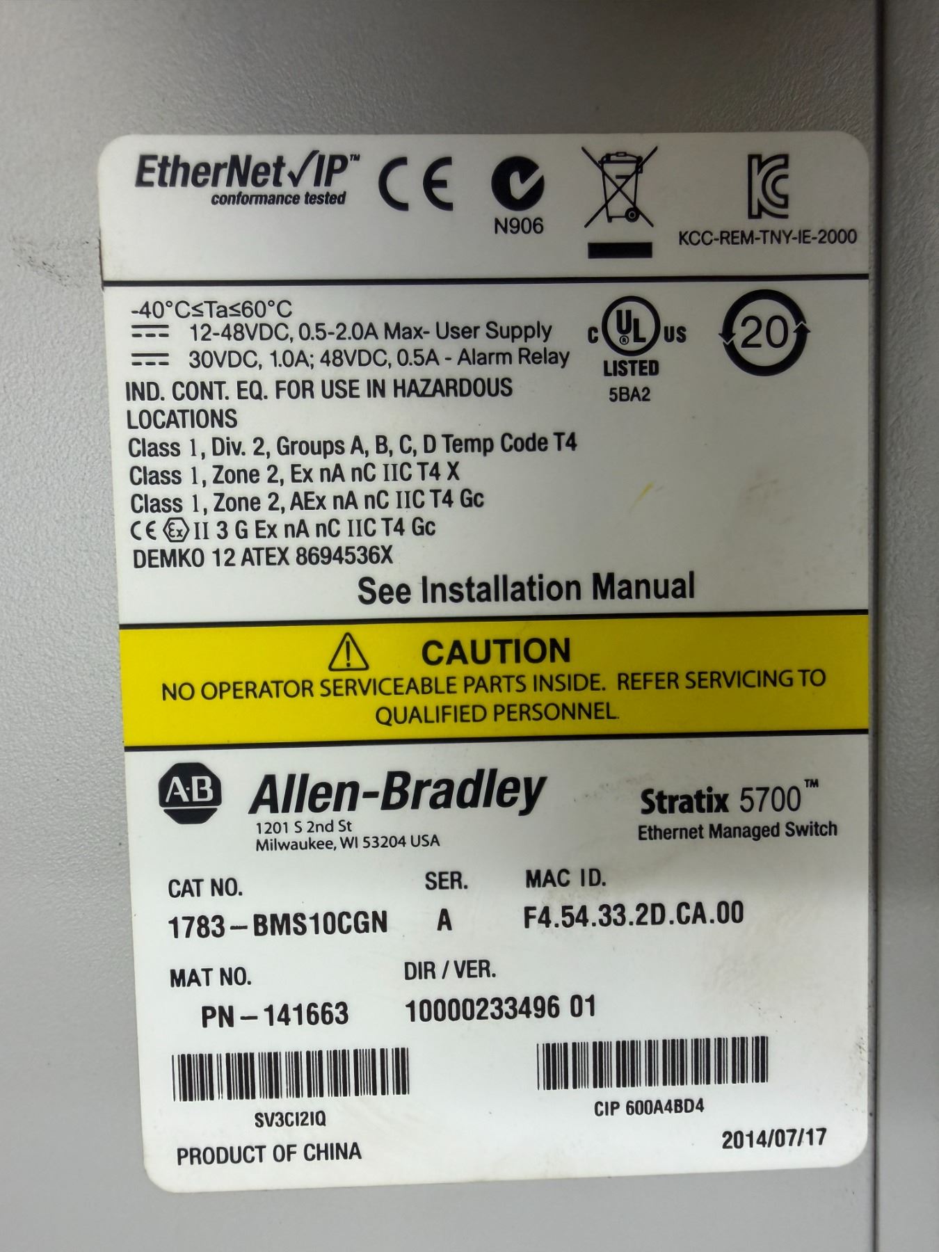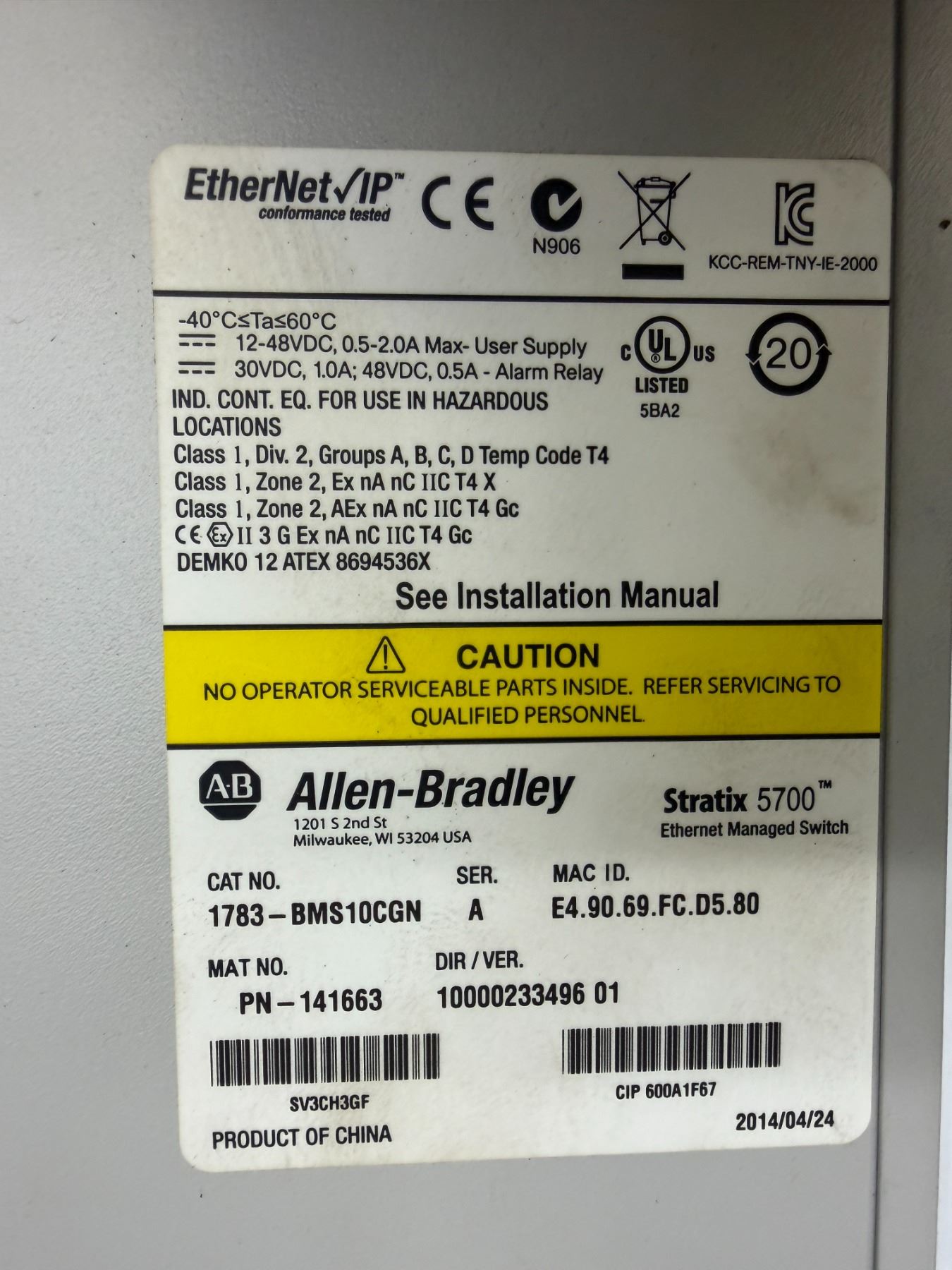 (2) Allen-Bradley #1783-BMS10CGN / #PN-141663 Stratix 5700 Ethernet Managed Switch