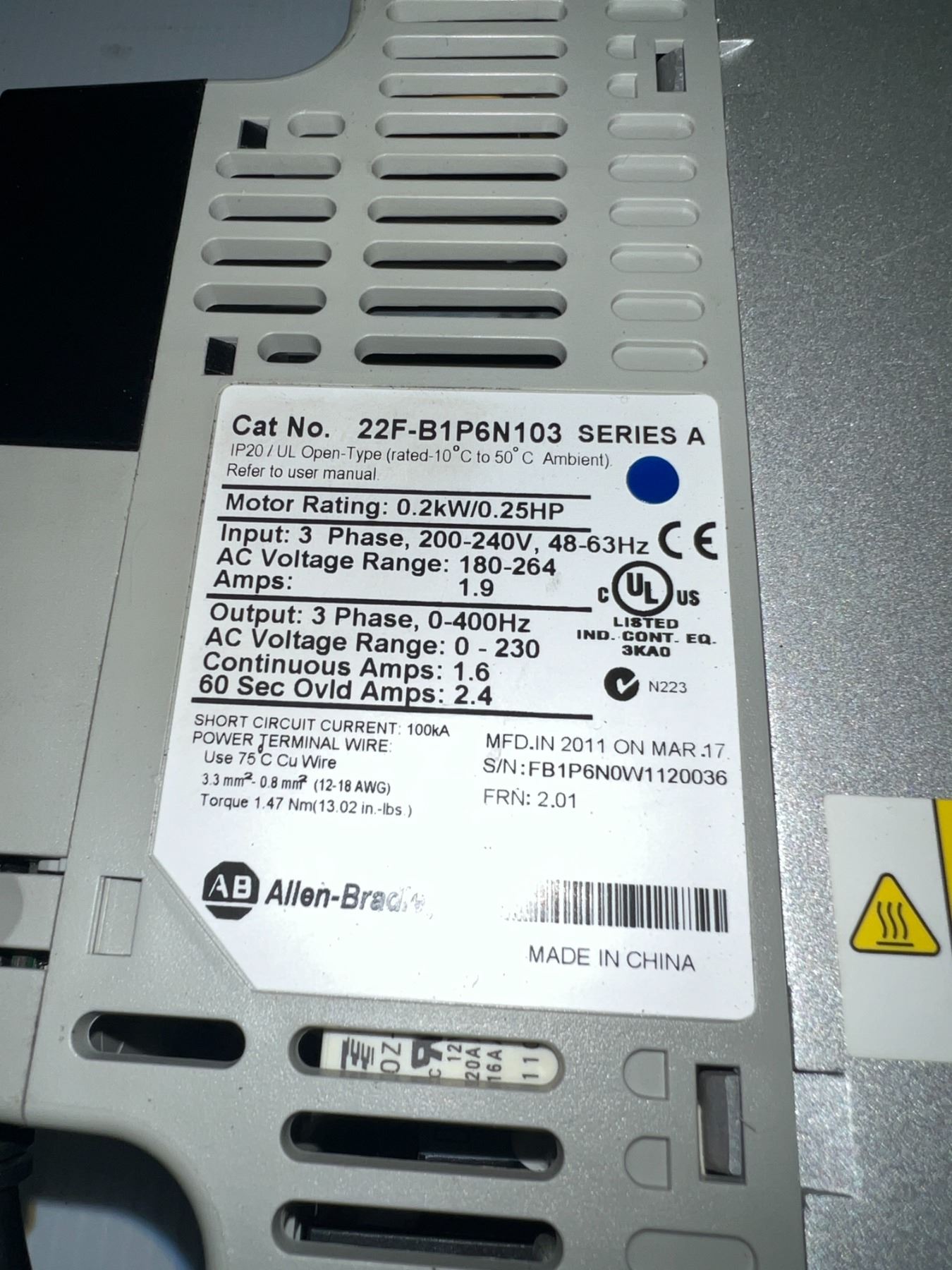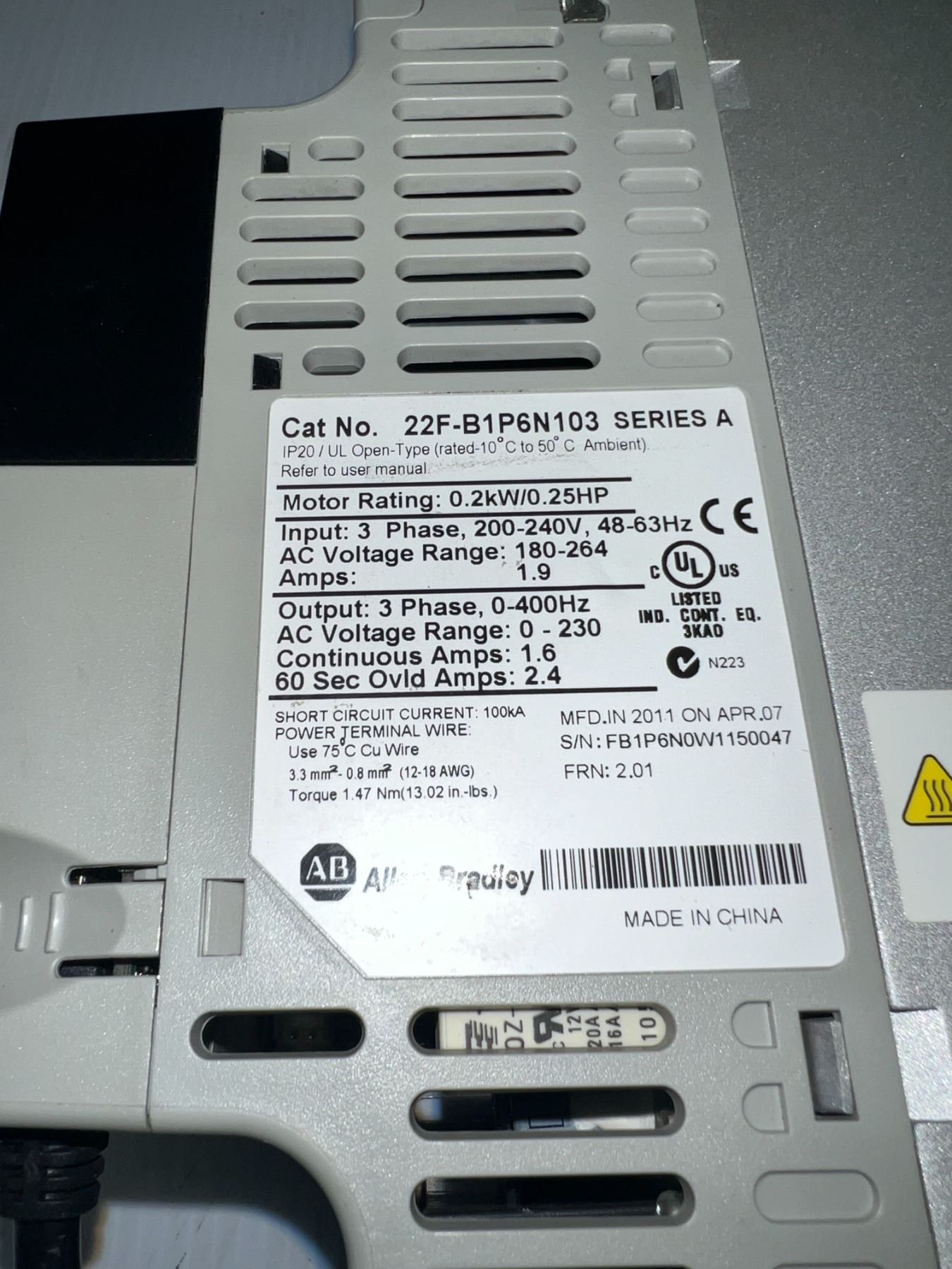 (2) Allen-Bradley #22F-B1P6N103 PowerFlex 4M Drives
