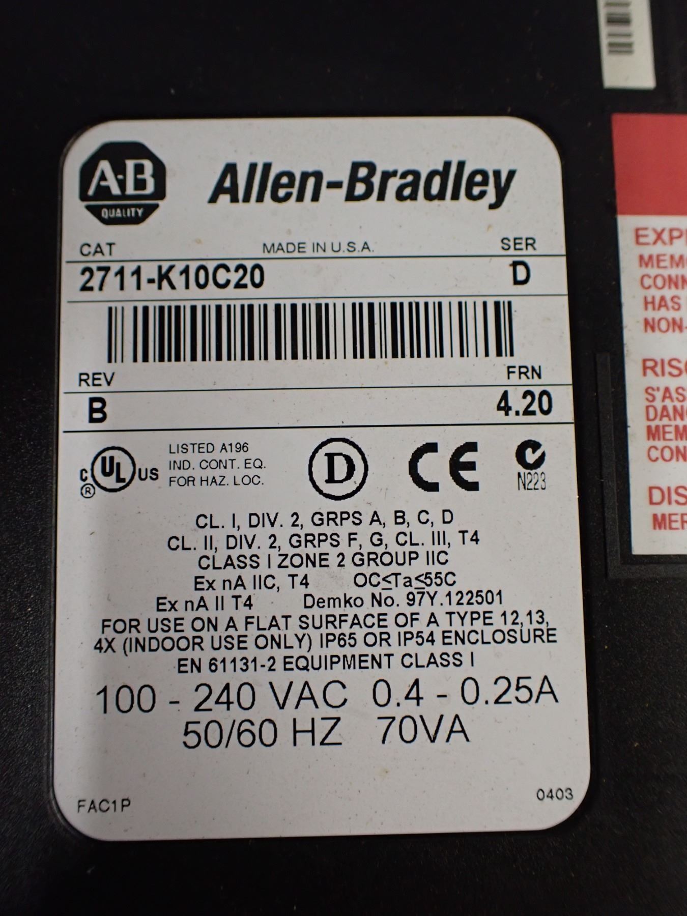 (2) Allen Bradley # 2711-K10C20 Screens
