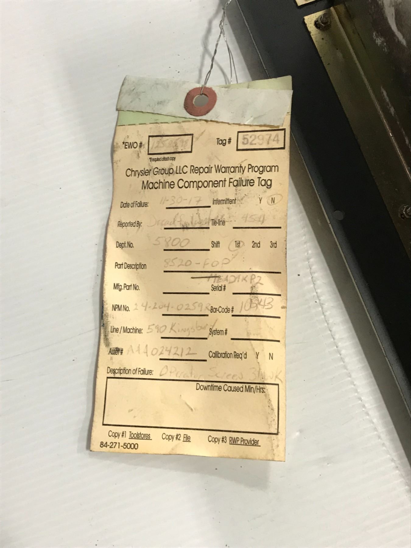 2.) SURPLUS INVENTORY - THIS MEANS THE PARTS WERE BEING STORED IN A TOOL CRIB OR STORAGE FACILITY. NO INFORMATION KNOWN IF AND WHEN IT WAS REMOVED FROM A MACHINE AND FOR WHAT REASON.