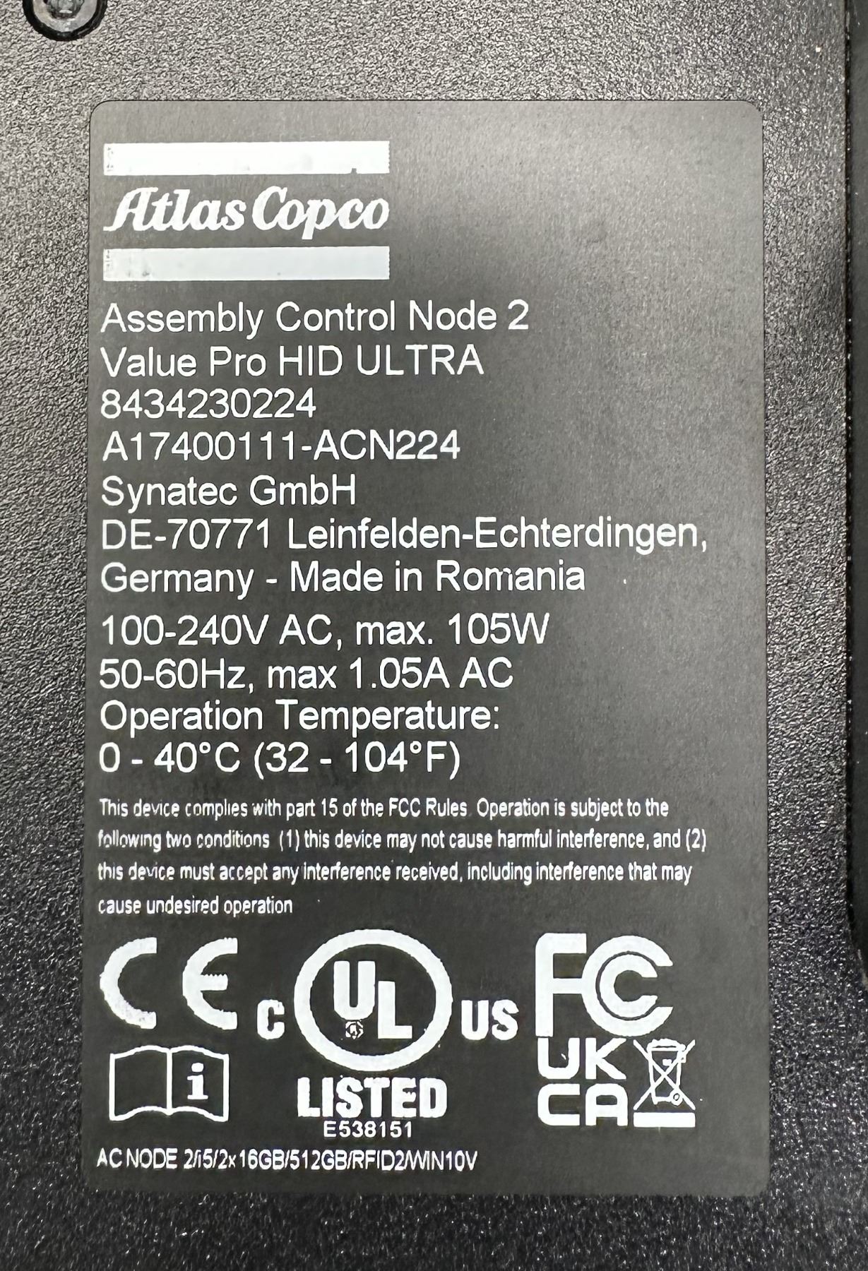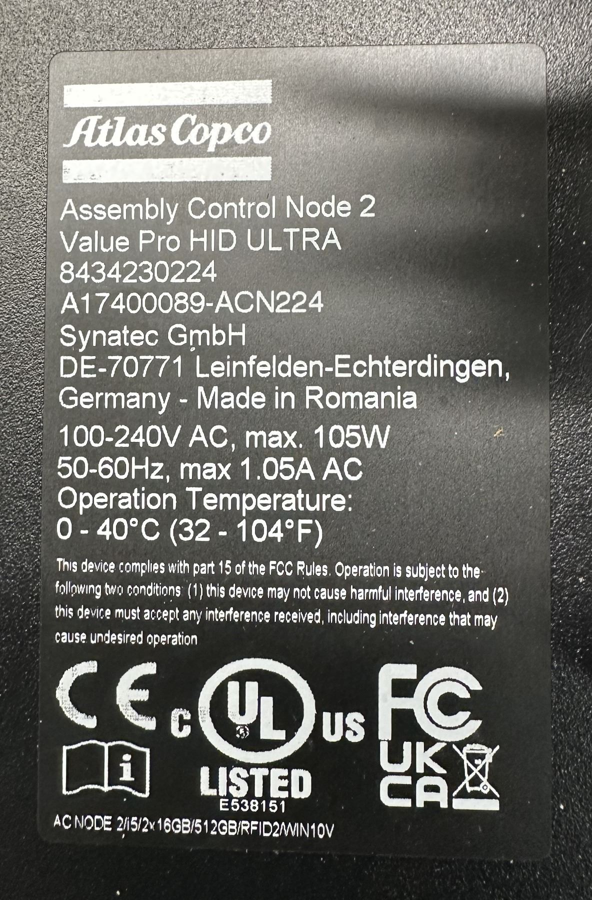 (2) Atlas Copco #8434230224 Assembly Control Node 2 Value Pro HD Ulta Touch Screens
