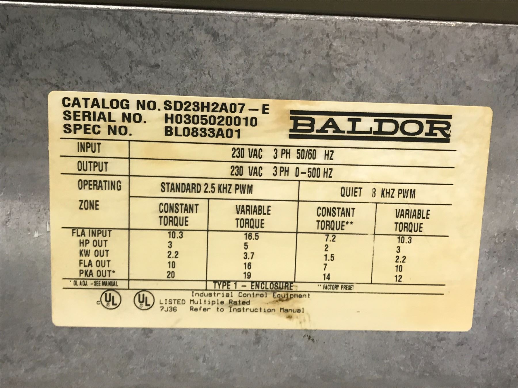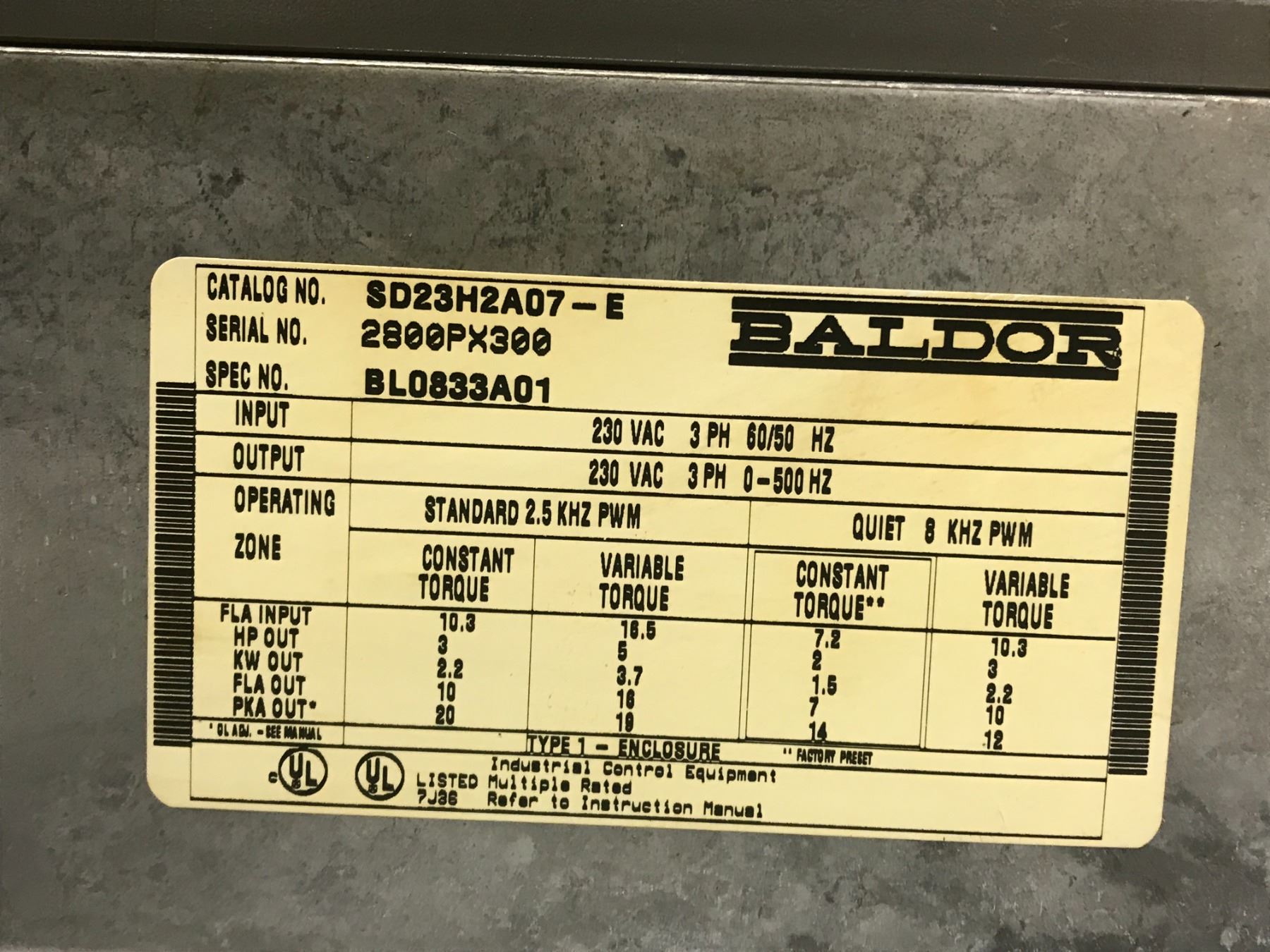 (2) Baldor #SD23H2A07-E Drive