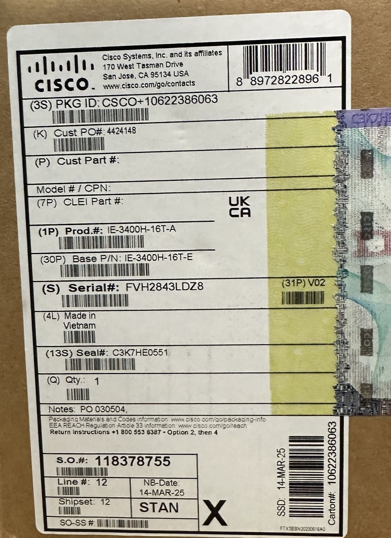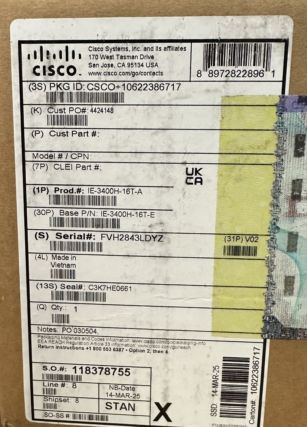 (2) Cisco #IE 3400H-16T-A V02 Catalyst Heavy Duty Ethernet Switches