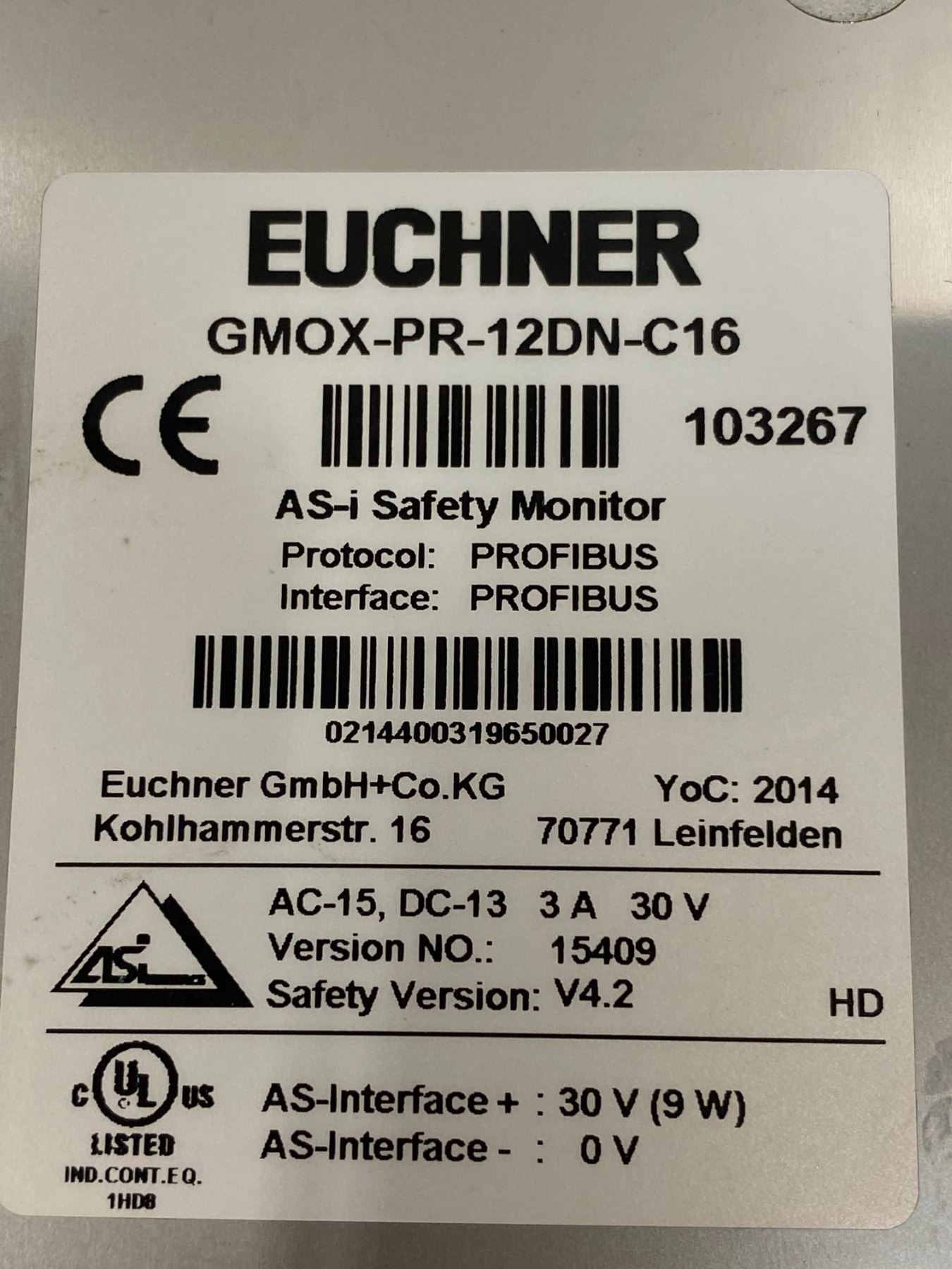 (2) Euchner # GMOX-PR-12DN-C16, GMOX-PR-22DN-C16 Safety Monitor
