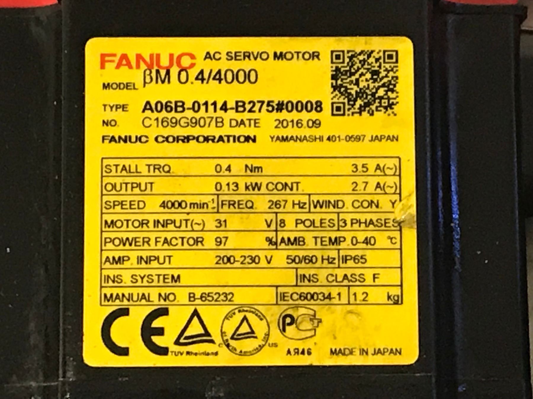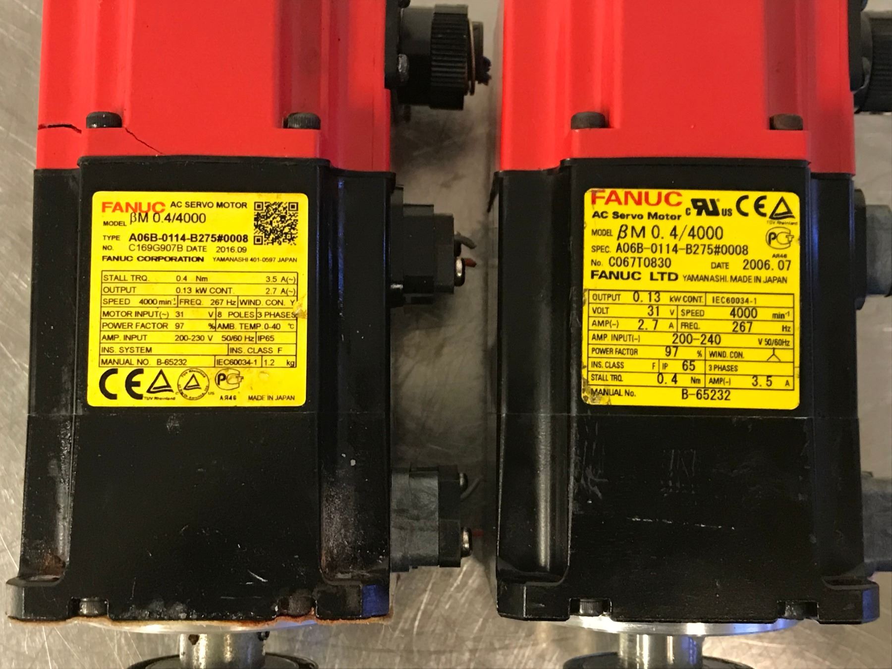 (2) FANUC A06B-0114-B275#0008 AC SERVO MOTOR