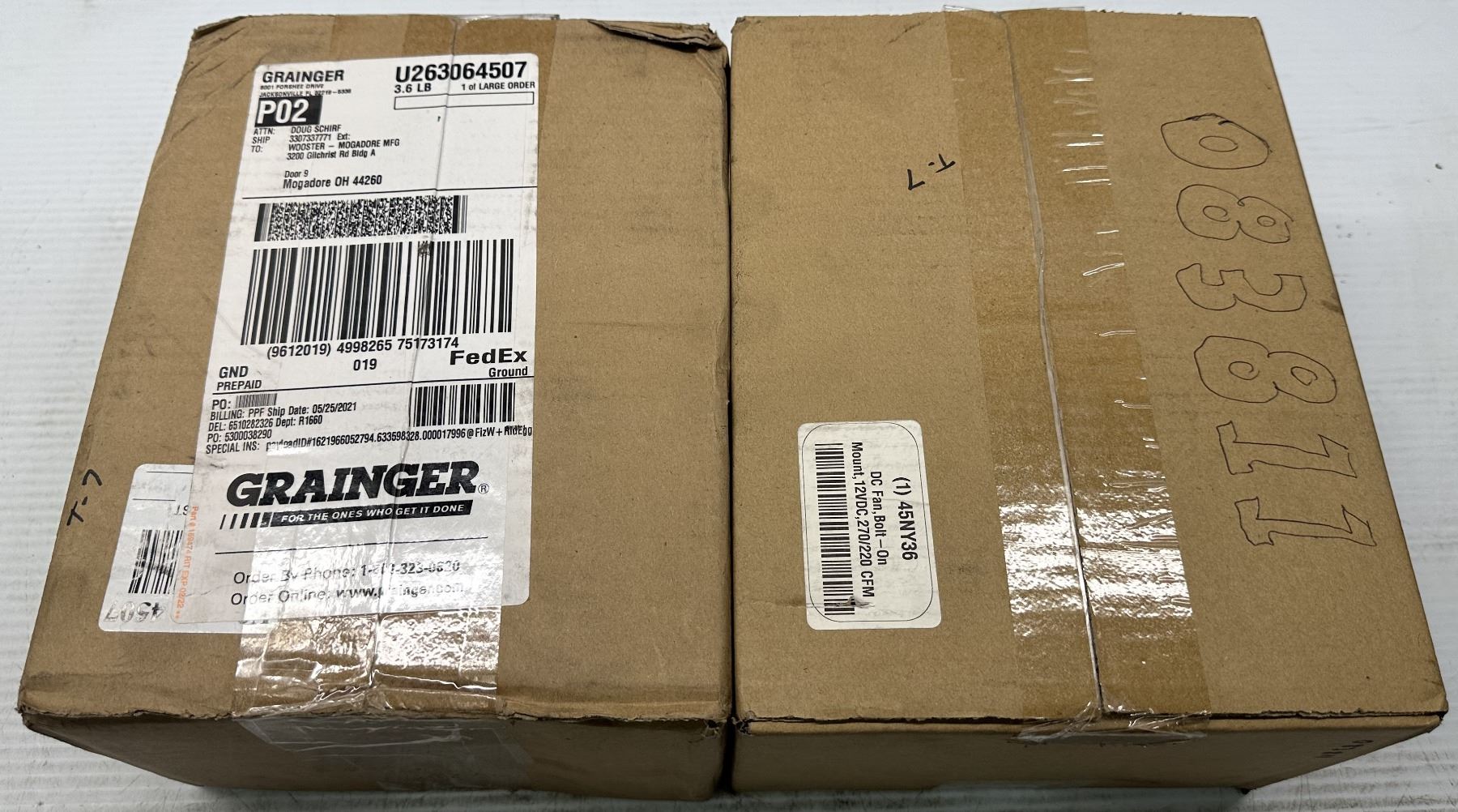(2) Factory Sealed Grainger #45NY36 DC Fan, Bolt-On Mount, 12VDC,270/220 CFM