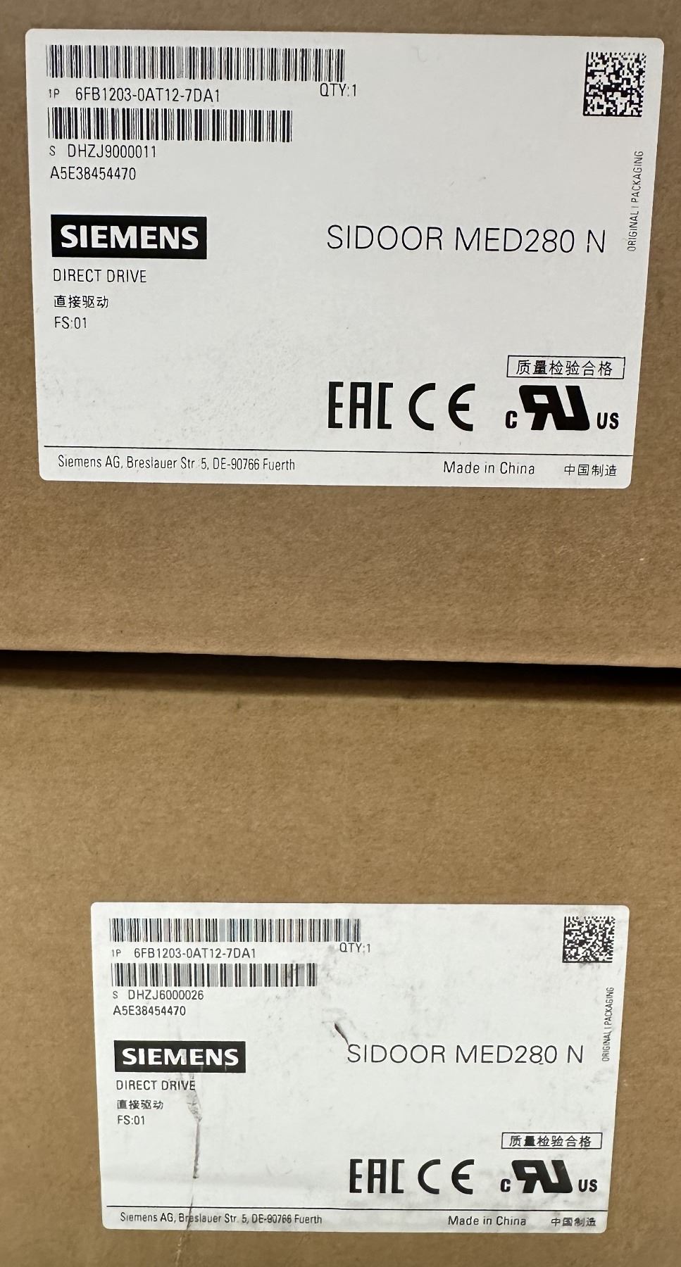 (2) Factory Sealed Siemens #6FB1203-0AT12-7DA1 Direct Drives
