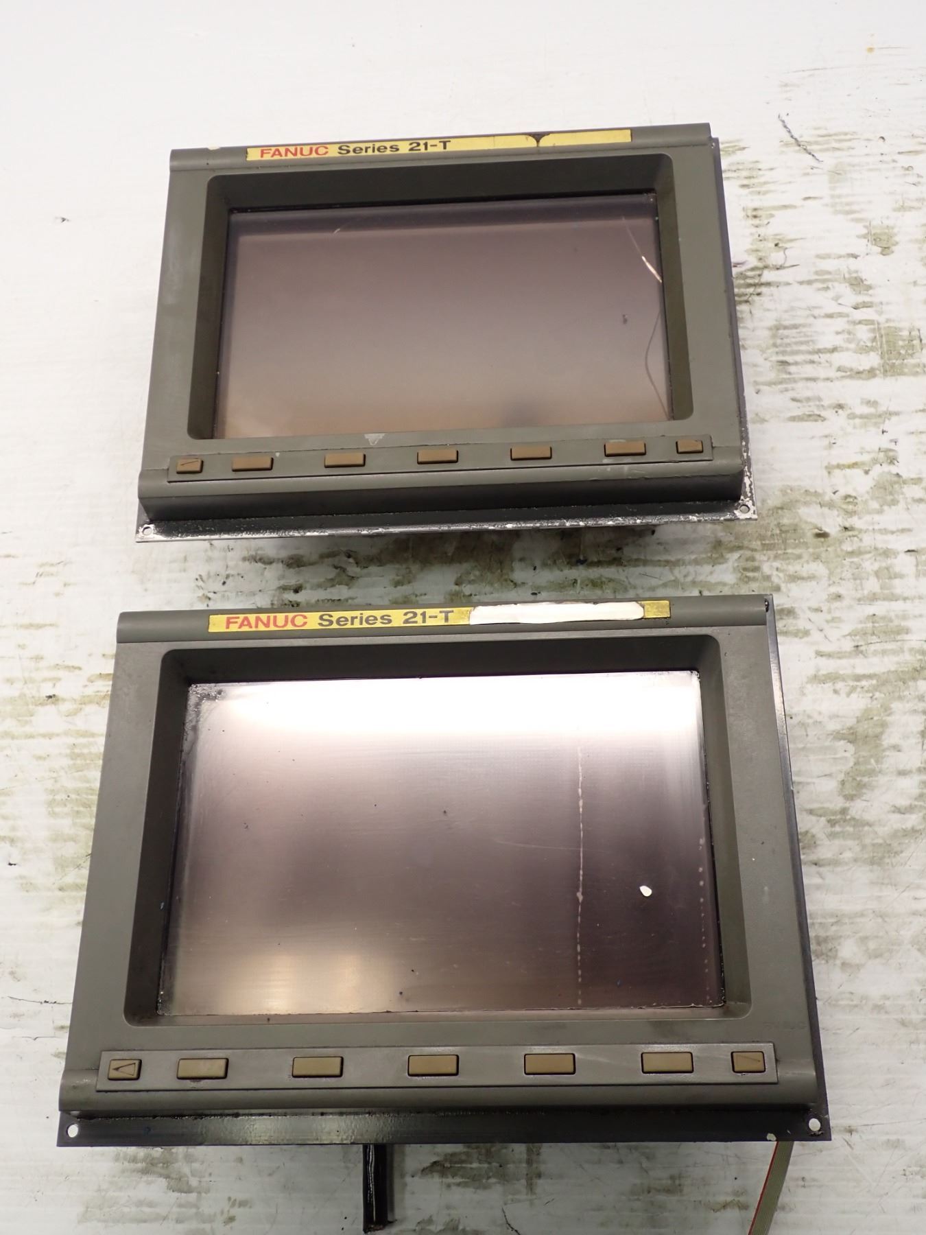 (2) Fanuc #A02B-0200-C100 Screens - (1) Cracked Glass / (1) Looks Like Something Under Glass)