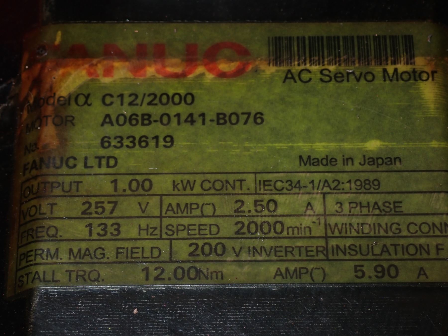(2) Fanuc #A06B-0141-B076 AC Servo Motors