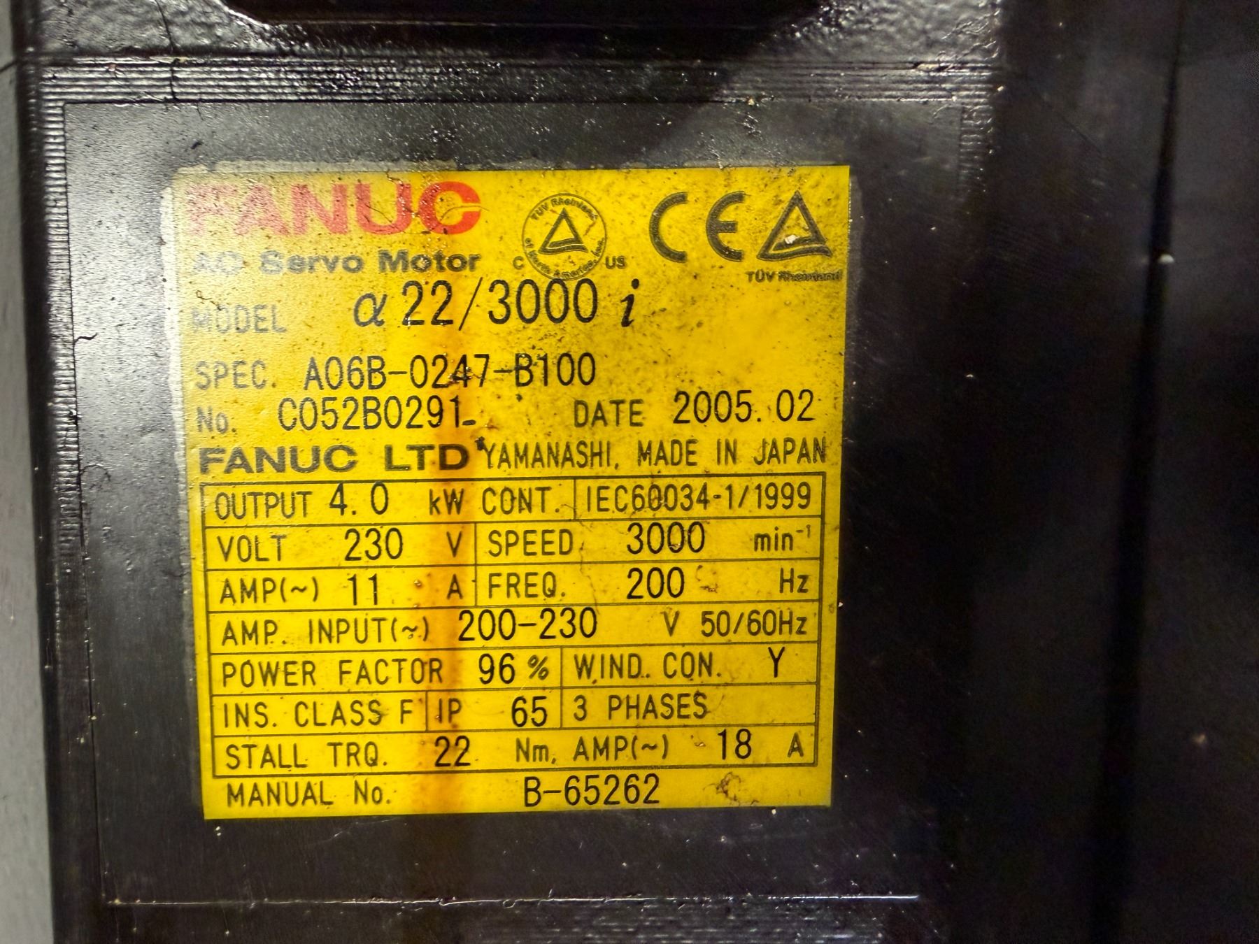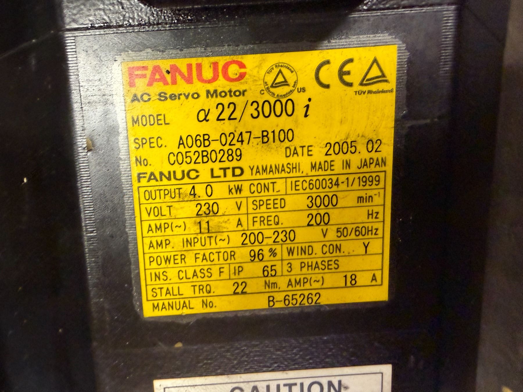 (2) Fanuc #A06B-0247-B100 AC Servo Motors w/ Encoders: A860-2000-T301