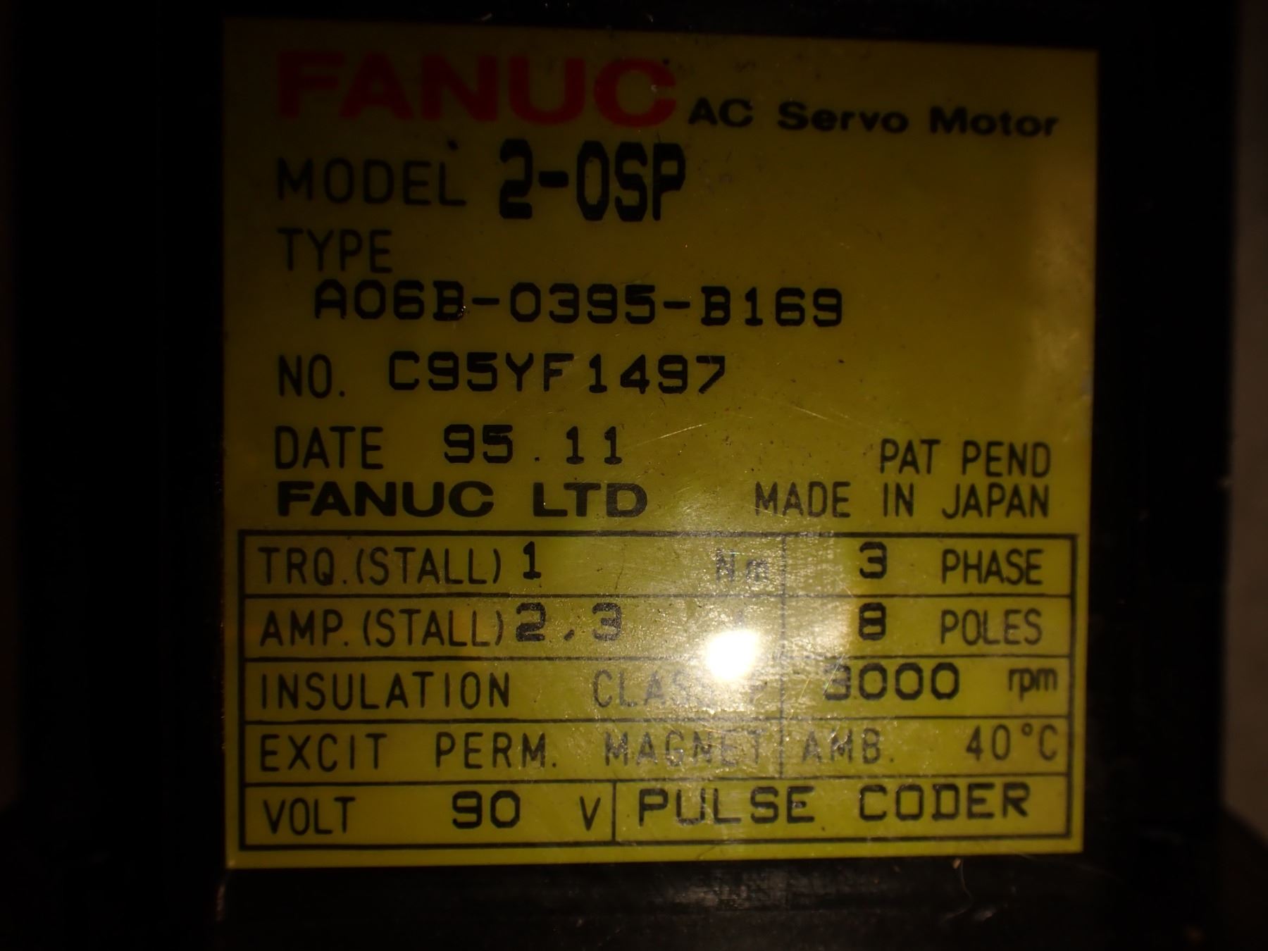 (2) Fanuc #A06B-0395-B169 AC Servo Motors w/Encoder #A860-0346-T041