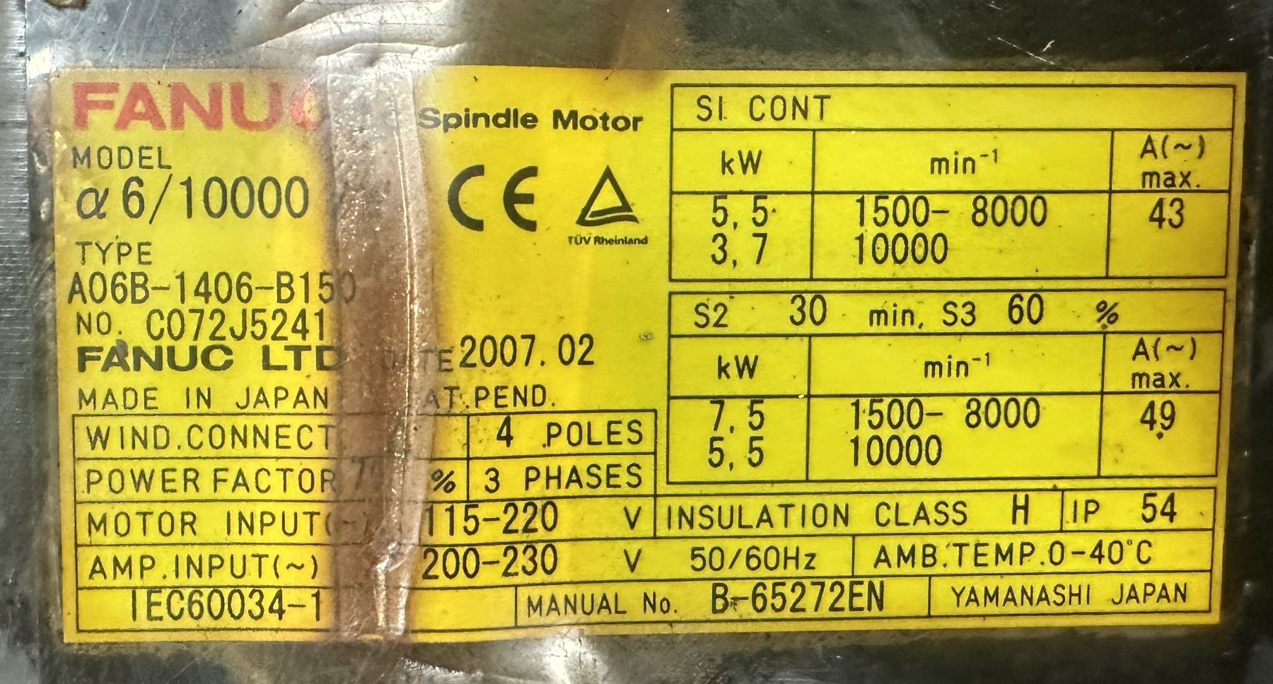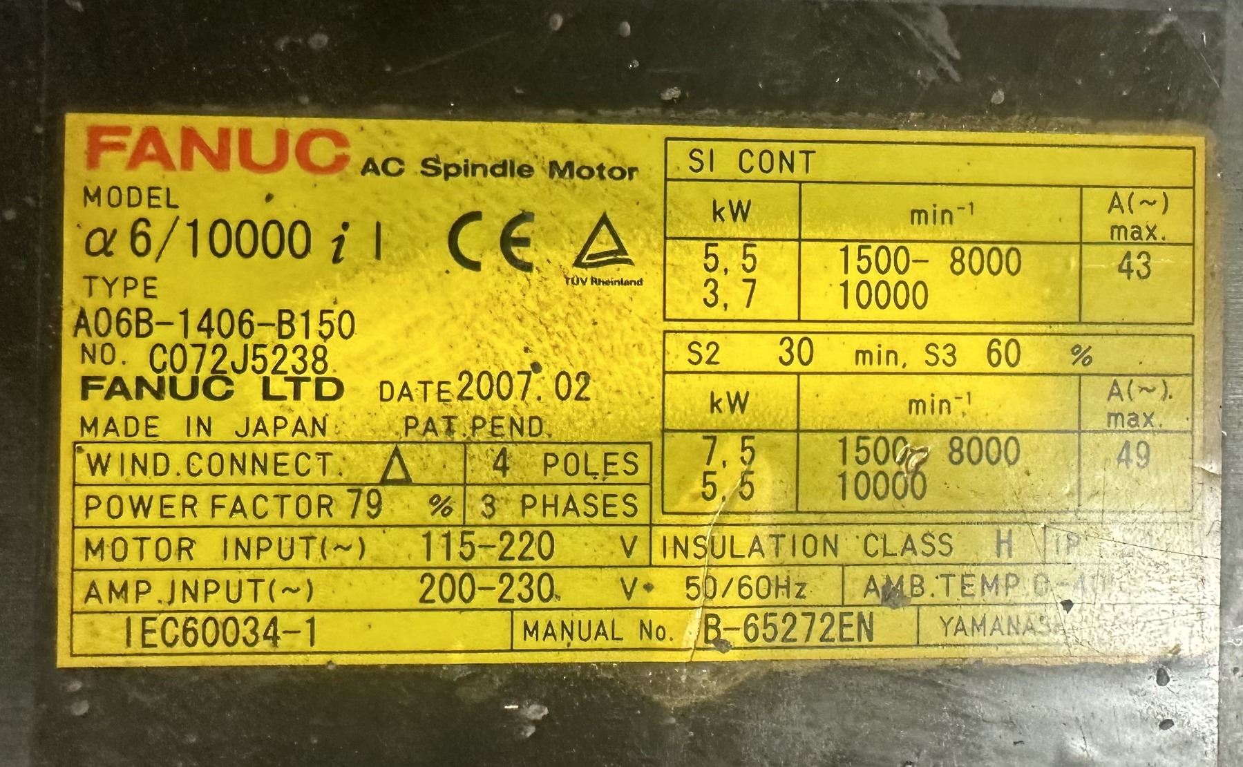 (2) Fanuc #A06B-1406-B150 AC Spindle Motors