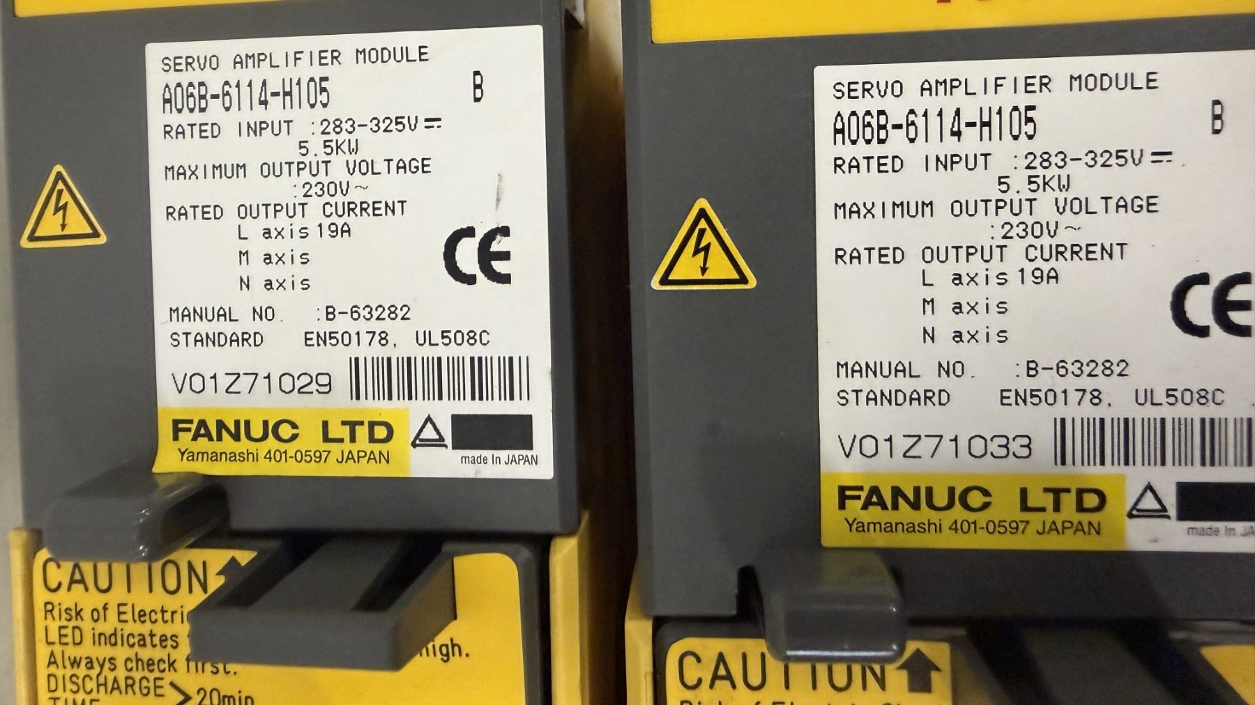 (2) Fanuc #A06B-6114-H105 Servo Amplifier Modules