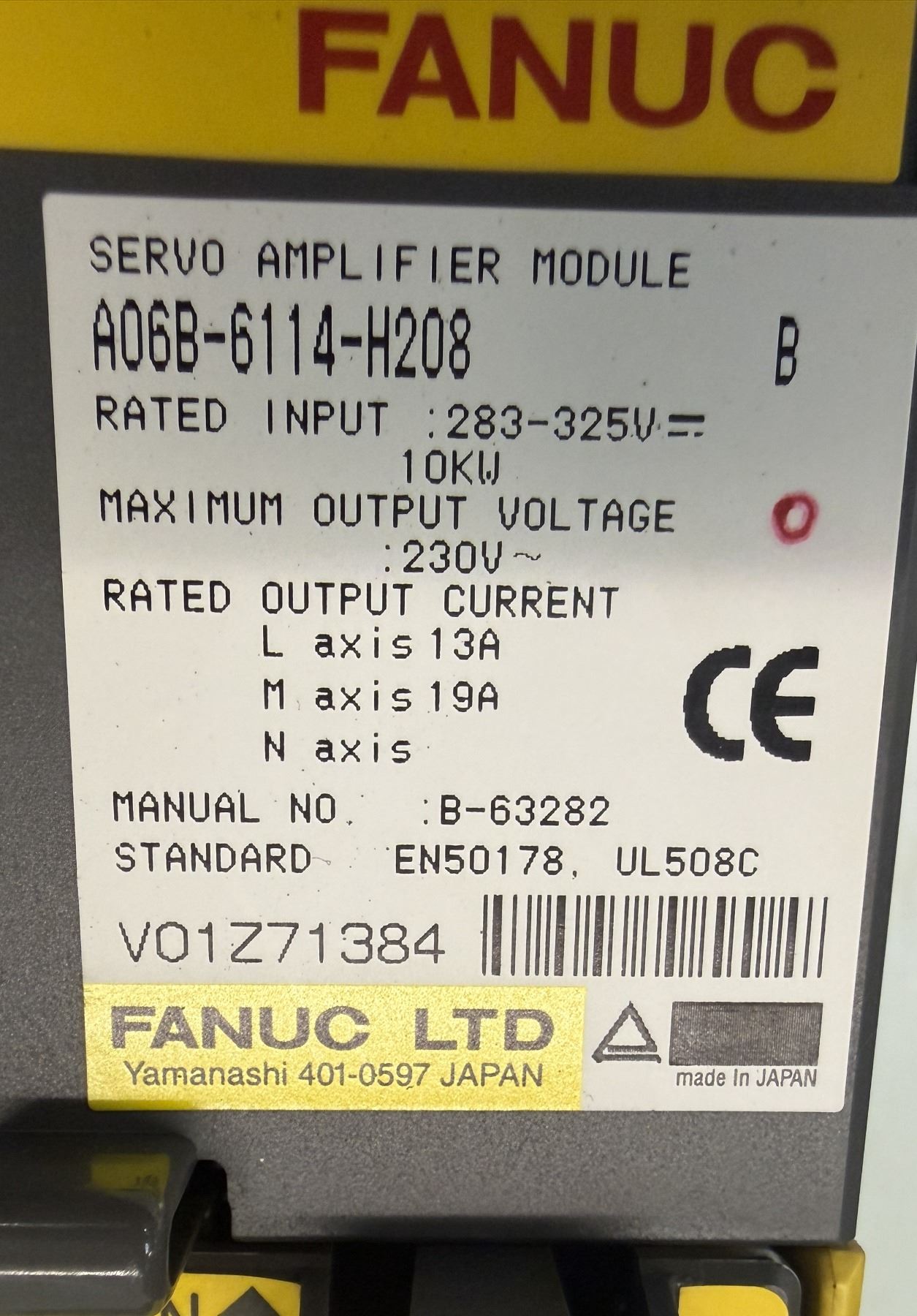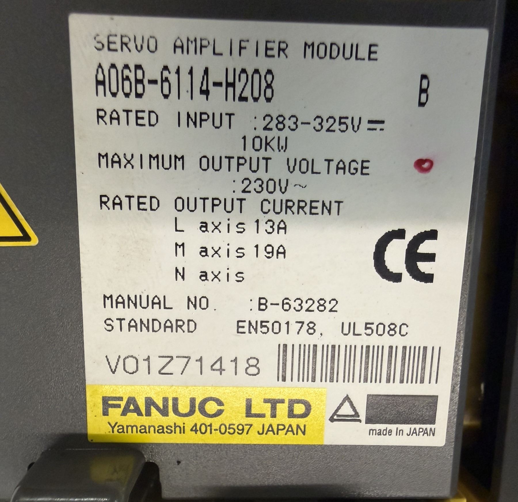 (2) Fanuc #A06B-6114-H208 Servo Amplifier Modules