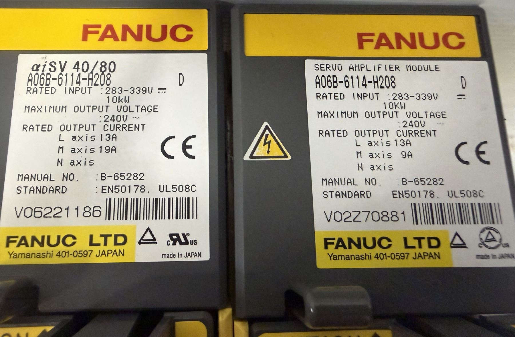 (2) Fanuc #A06B-6114-H208 Servo Amplifier Modules