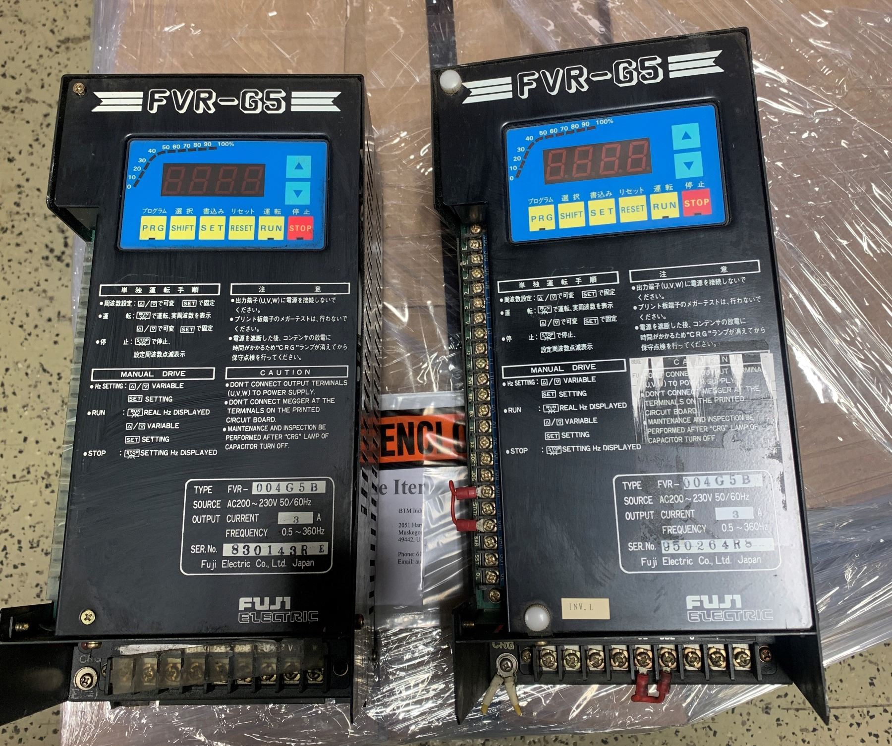 (2) Fuji Electric #FVR-004G5B_FVR-G5 Variable Frequency Drives