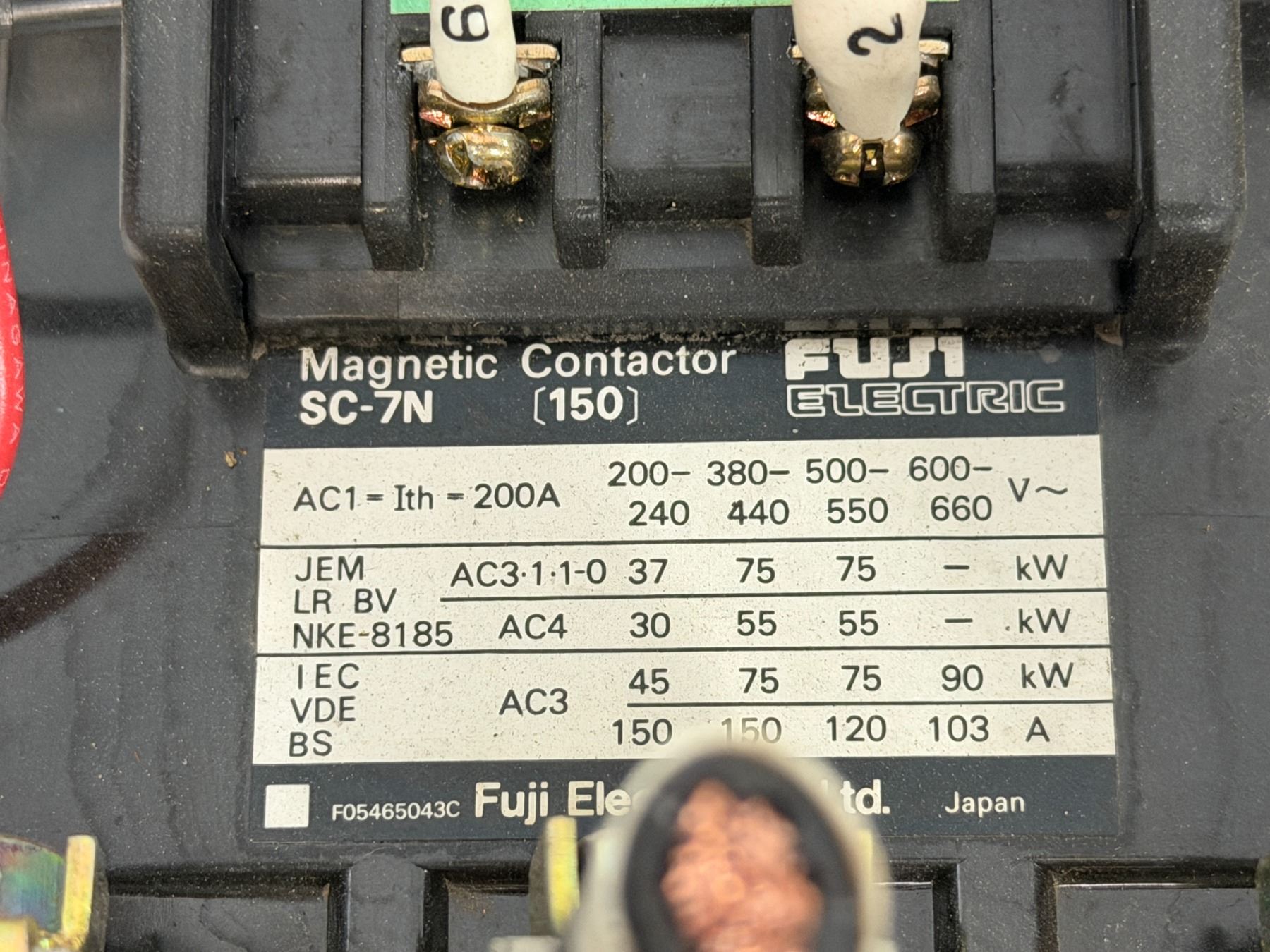 (2) Fuji Electric #SC-7N (150) Magnetic Contactors