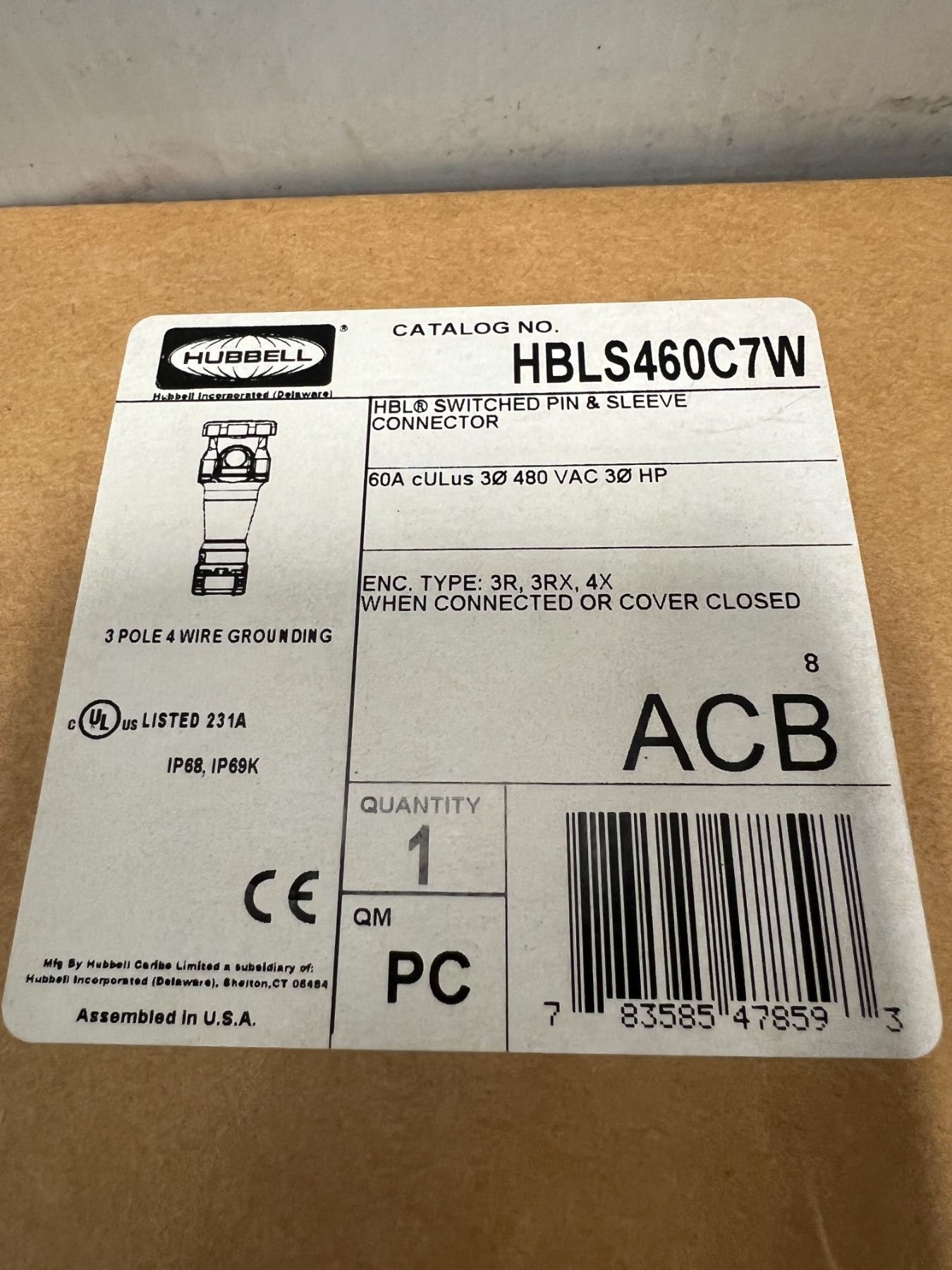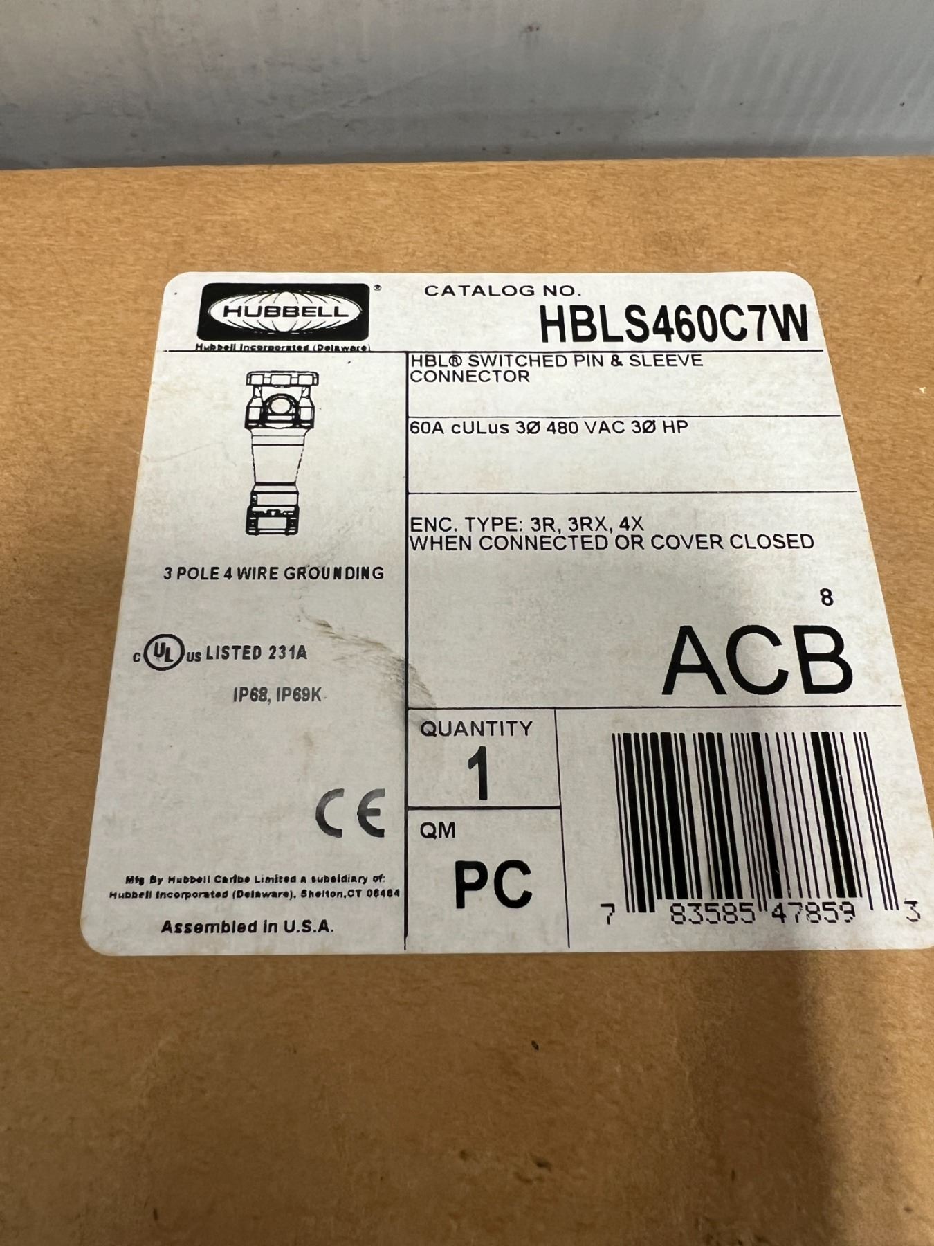 (2) Hubbell #HBLS460C7W HBL Switched Pin & Sleeve Connectors
