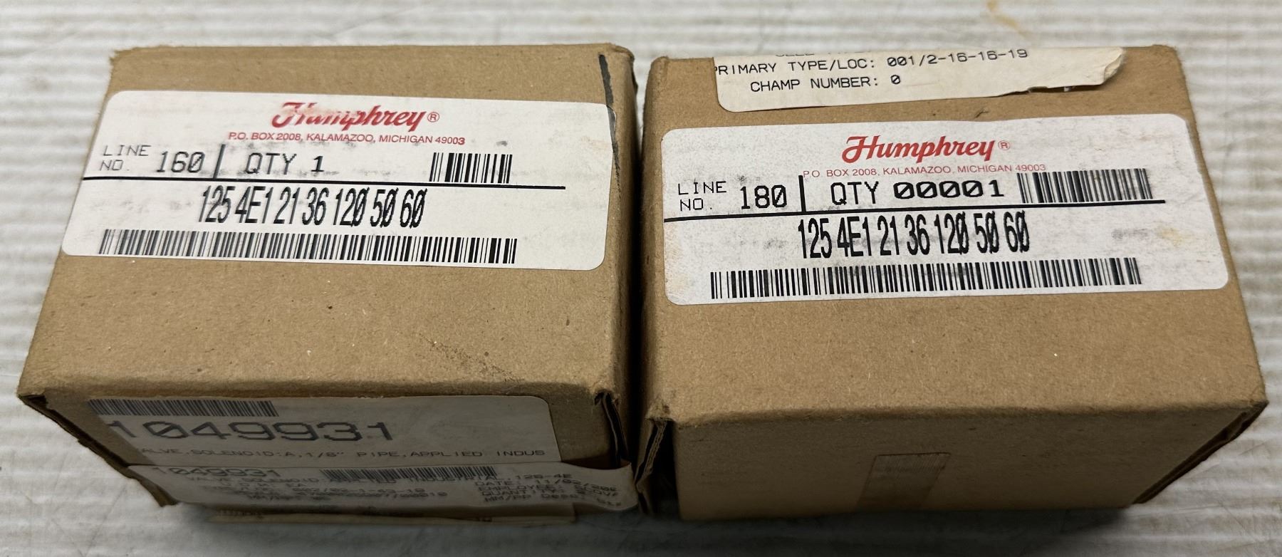 (2) Humphrey #125 4E1 21 36 120 50 60 Solenoid Valves