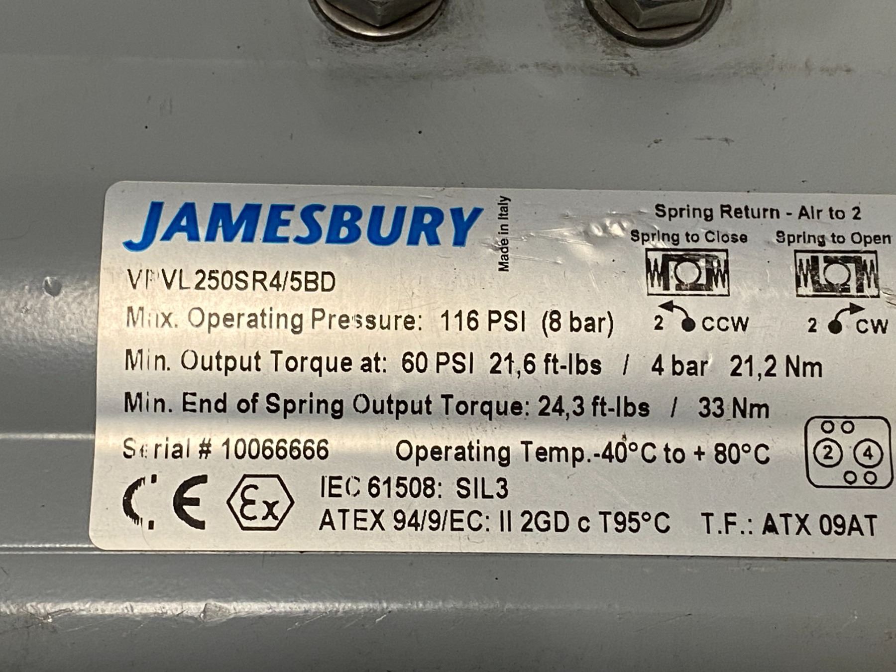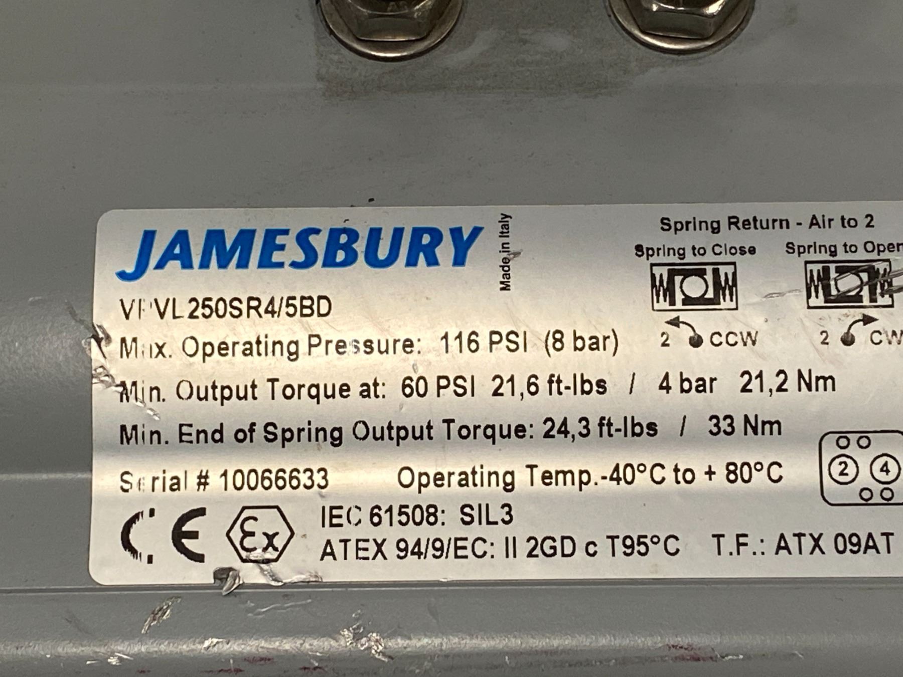 (2) Jamesbury # VPVL250SR4/5BD Actuators