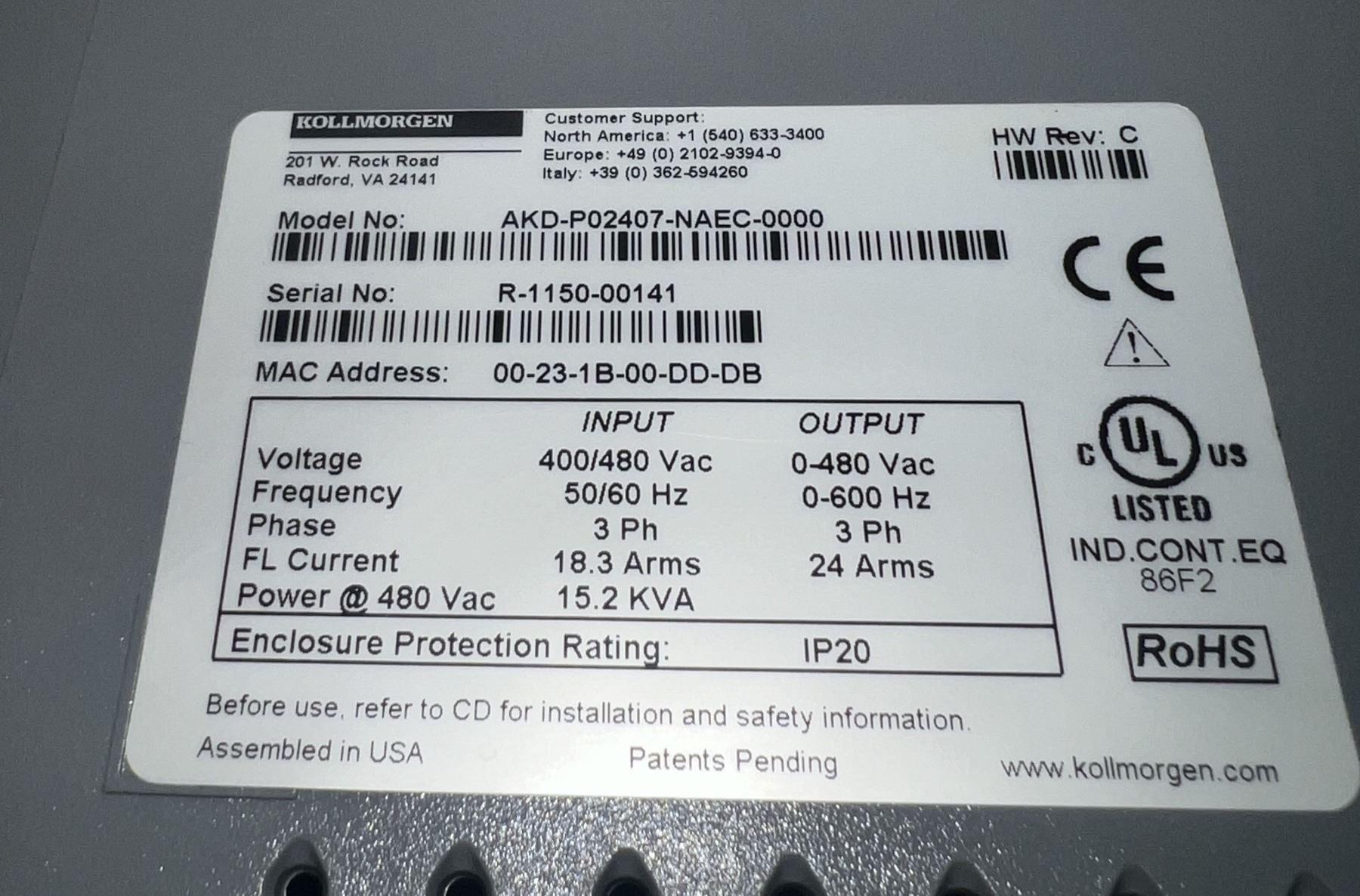 (2) Kollmorgen #AKD-P02407-NAEC-0000 Drives