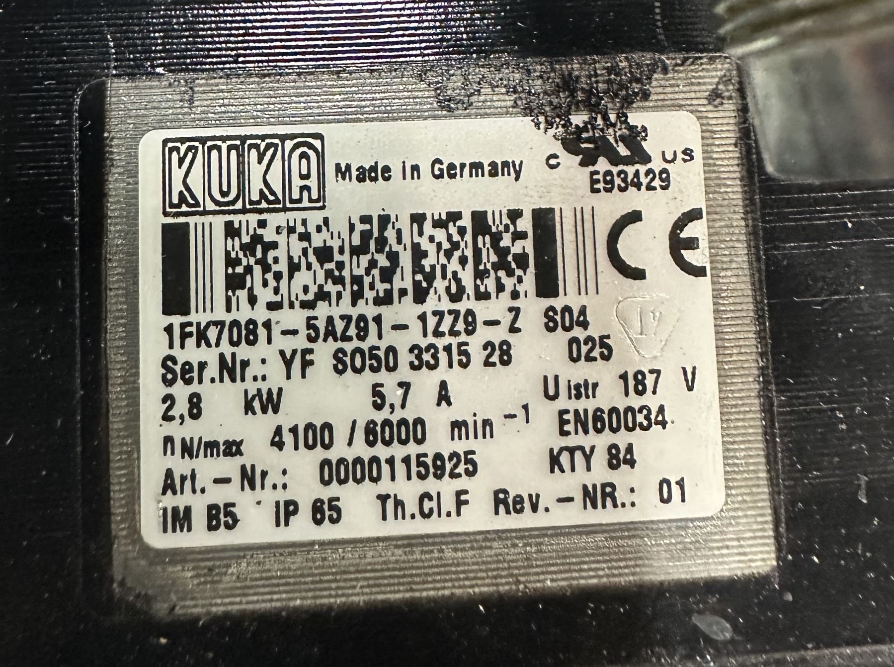 (2) Kuka #1FK7081-5AZ91-1ZZ9-Z Siemens Servo Motors