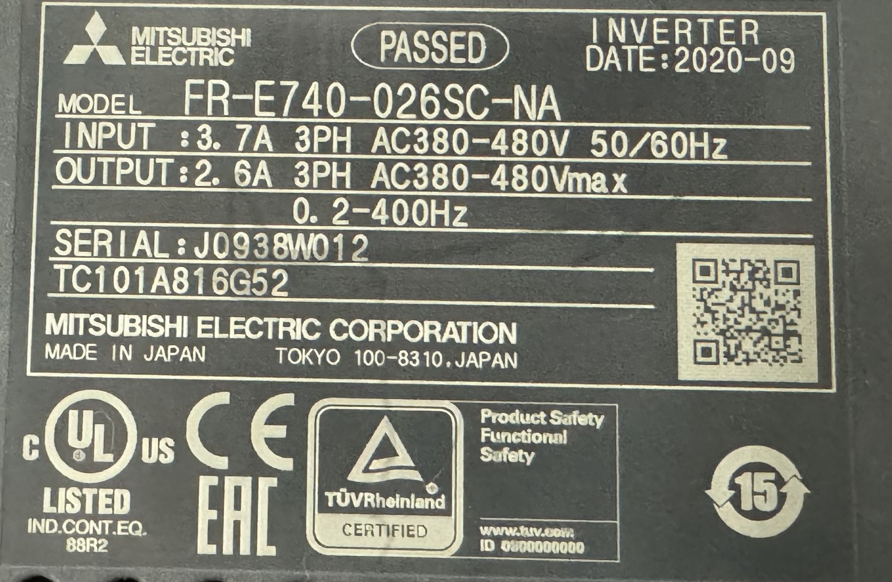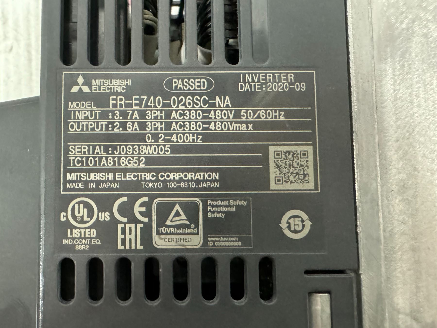 (2) Mitsubishi #FR-E740-026SC-NA Inverter