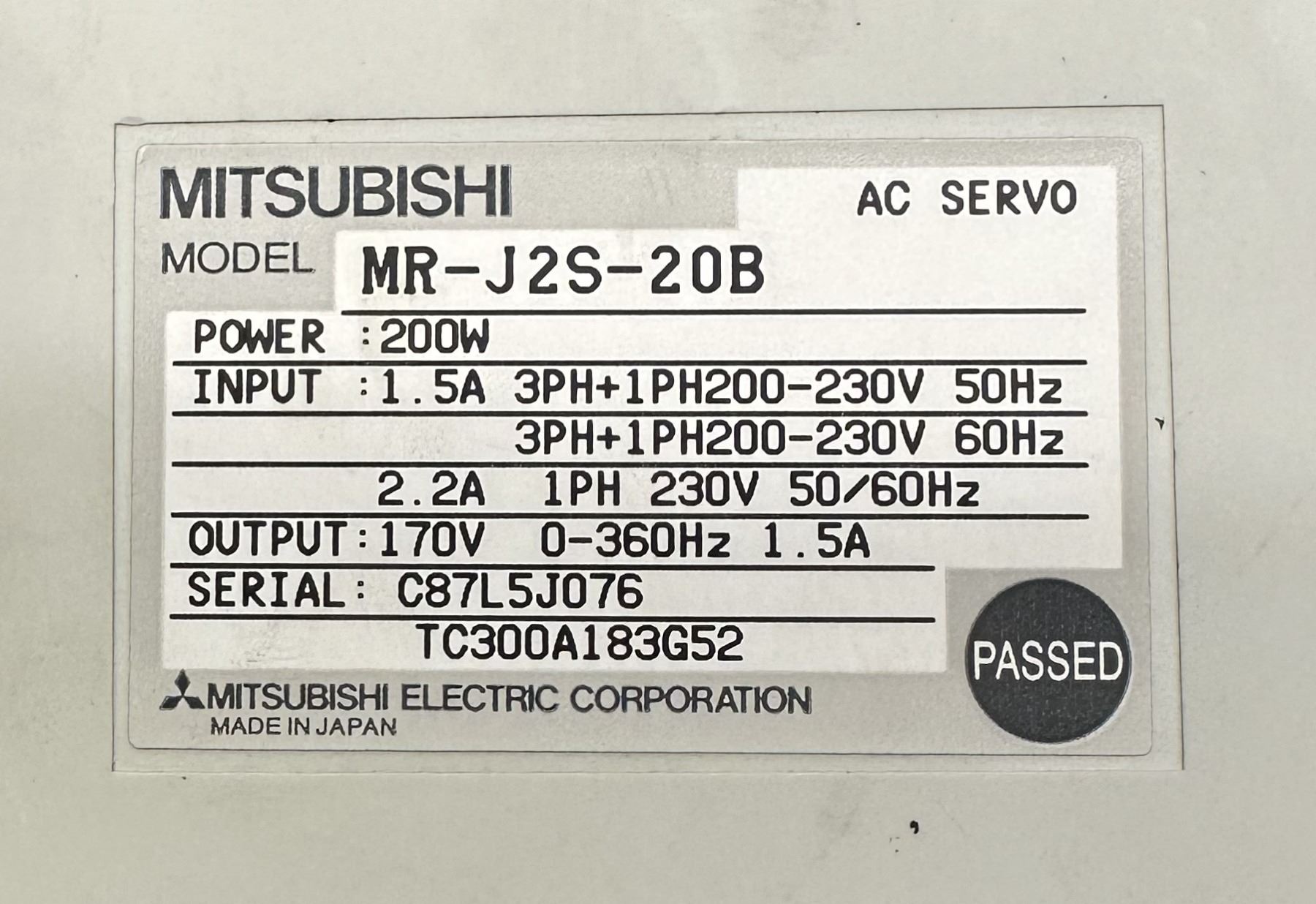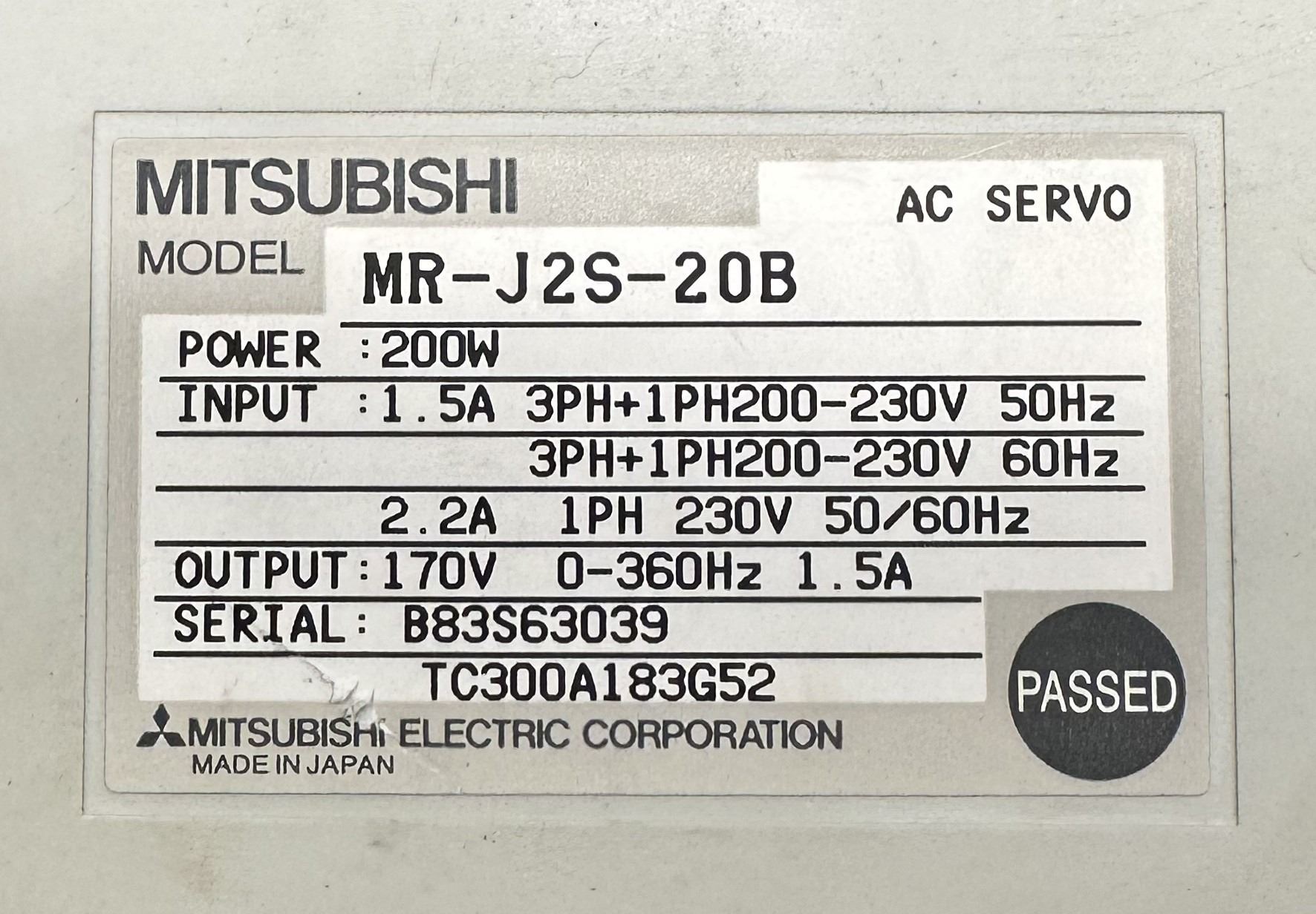 (2) Mitsubishi #MR-J2S-20B AC Servo Drivers