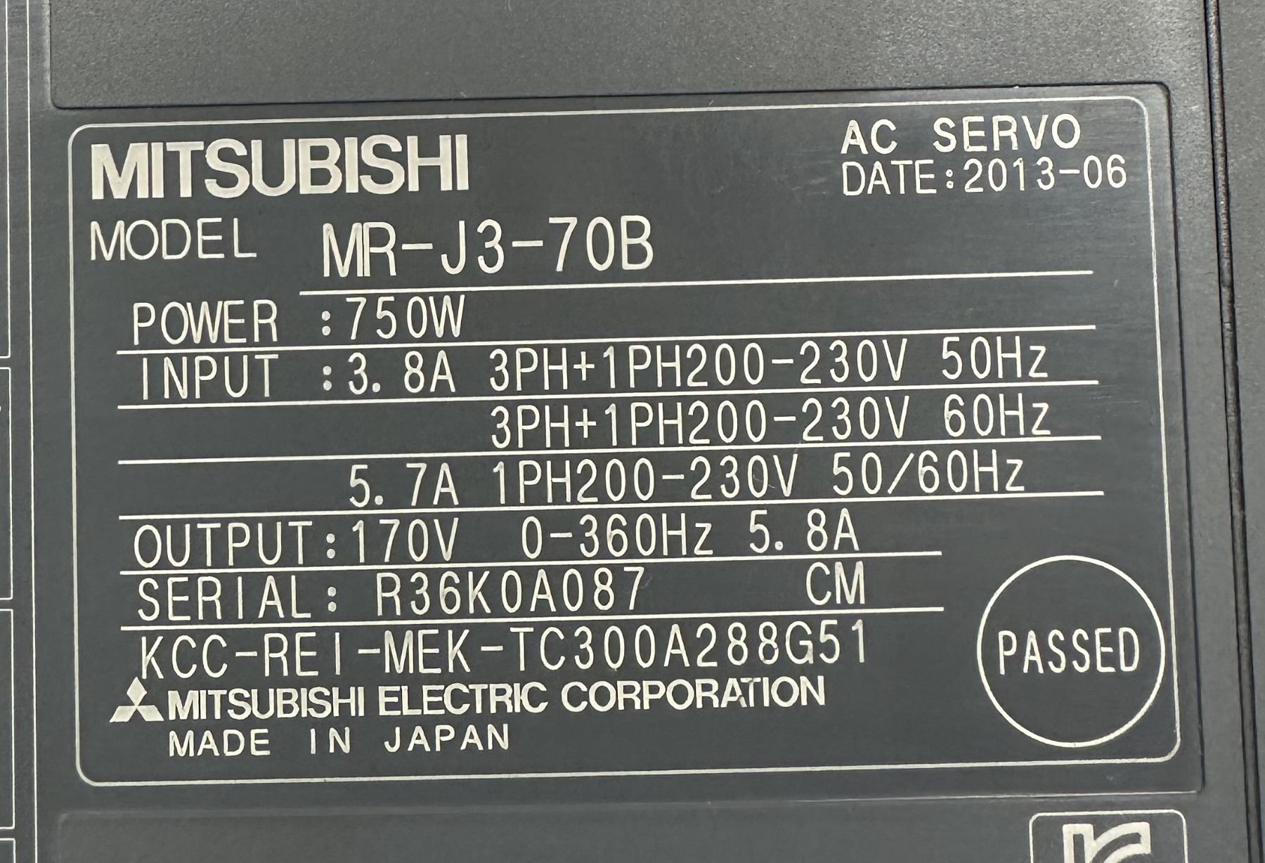 (2) Mitsubishi #MR-J3-70B AC Servo Drives