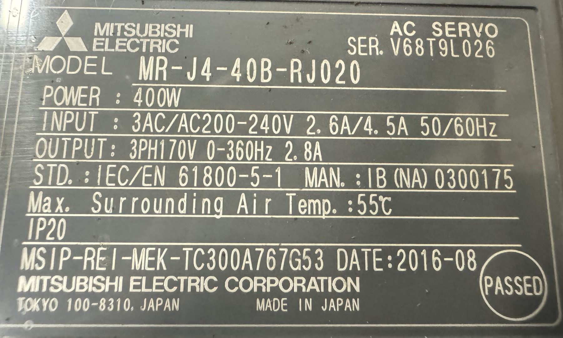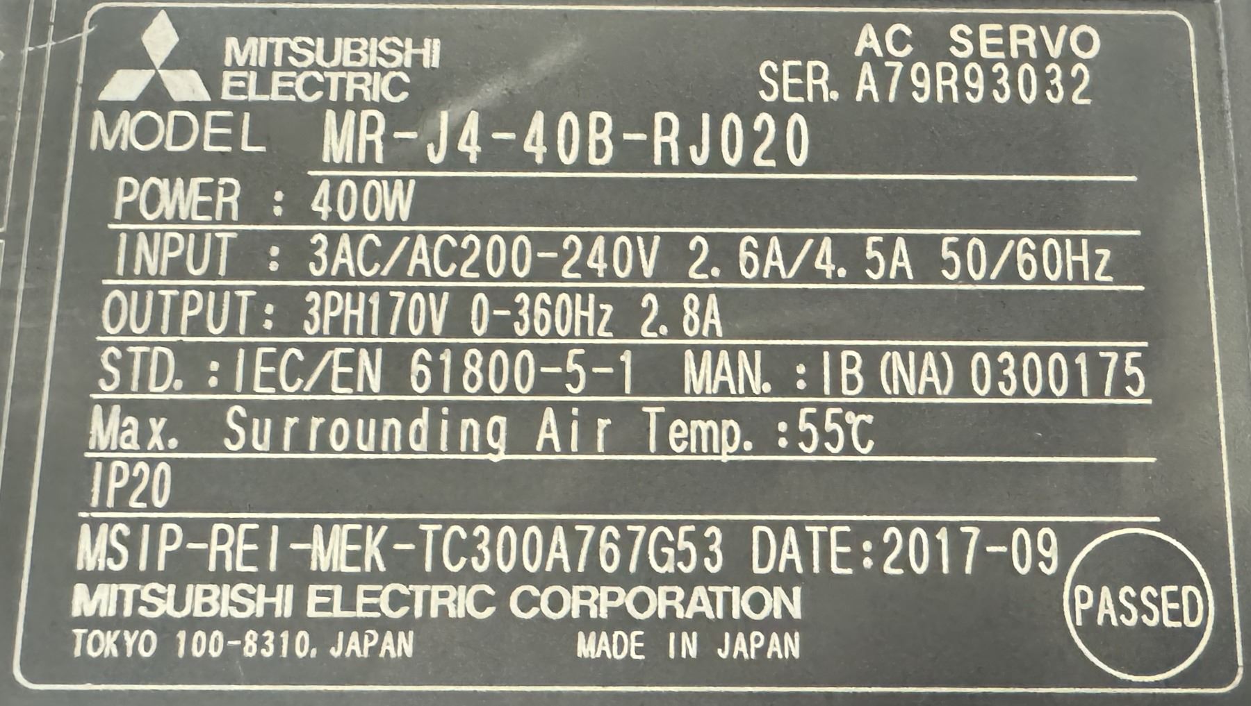 (2) Mitsubishi #MR-J4-40B-RJ020 AC Servo Drive