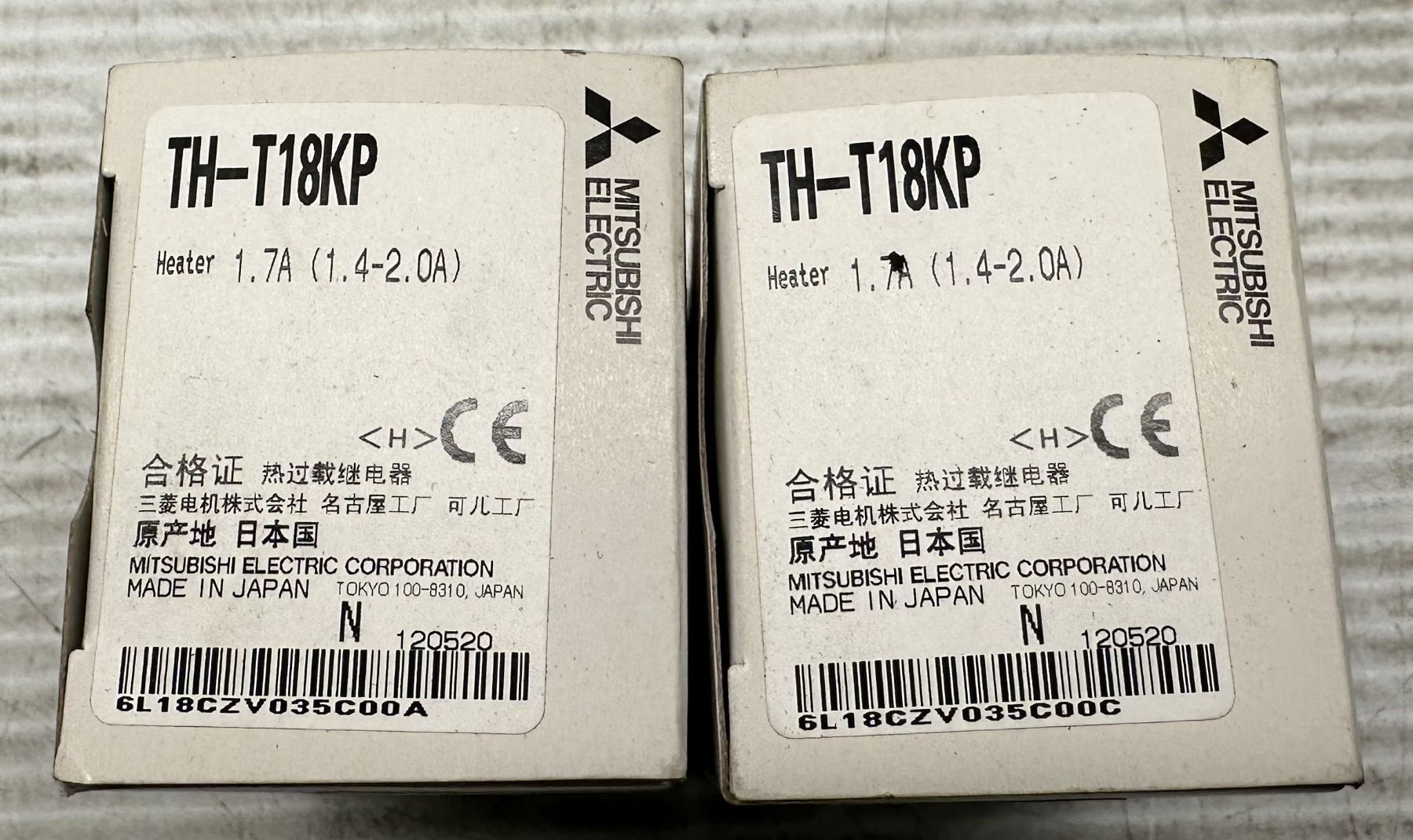 (2) Mitsubishi #TH-T18KP Thermal Overload Relays